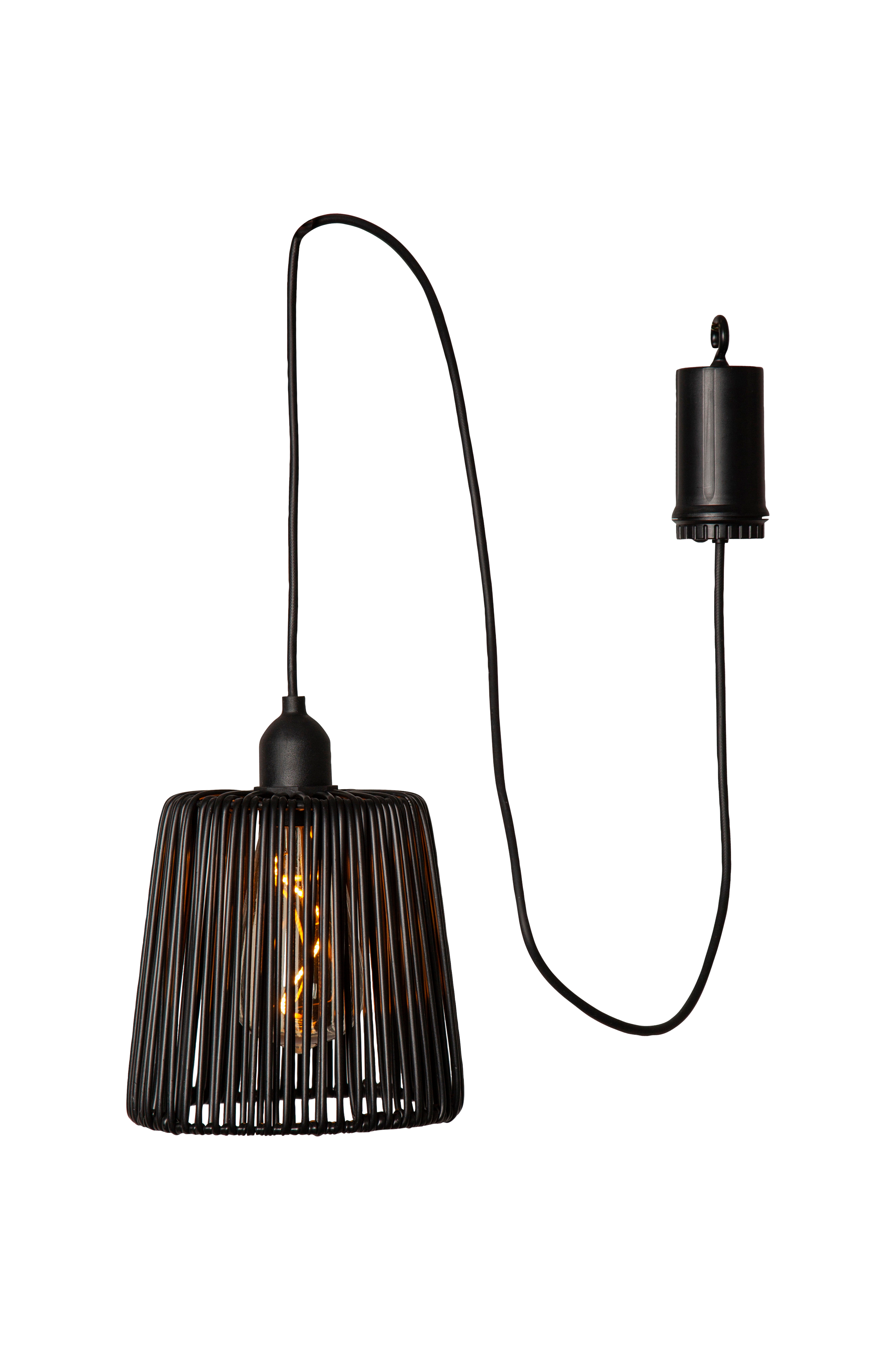 Elegantti lampunvarjostin ruskeaa polyrottinkia. Sisä- ja ulkokäyttöön. LED-filamenttilamppu, jossa spiraalin muotoinen hehkulanka. Paristokäyttöinen ulkokoriste ajastintoiminnolla.