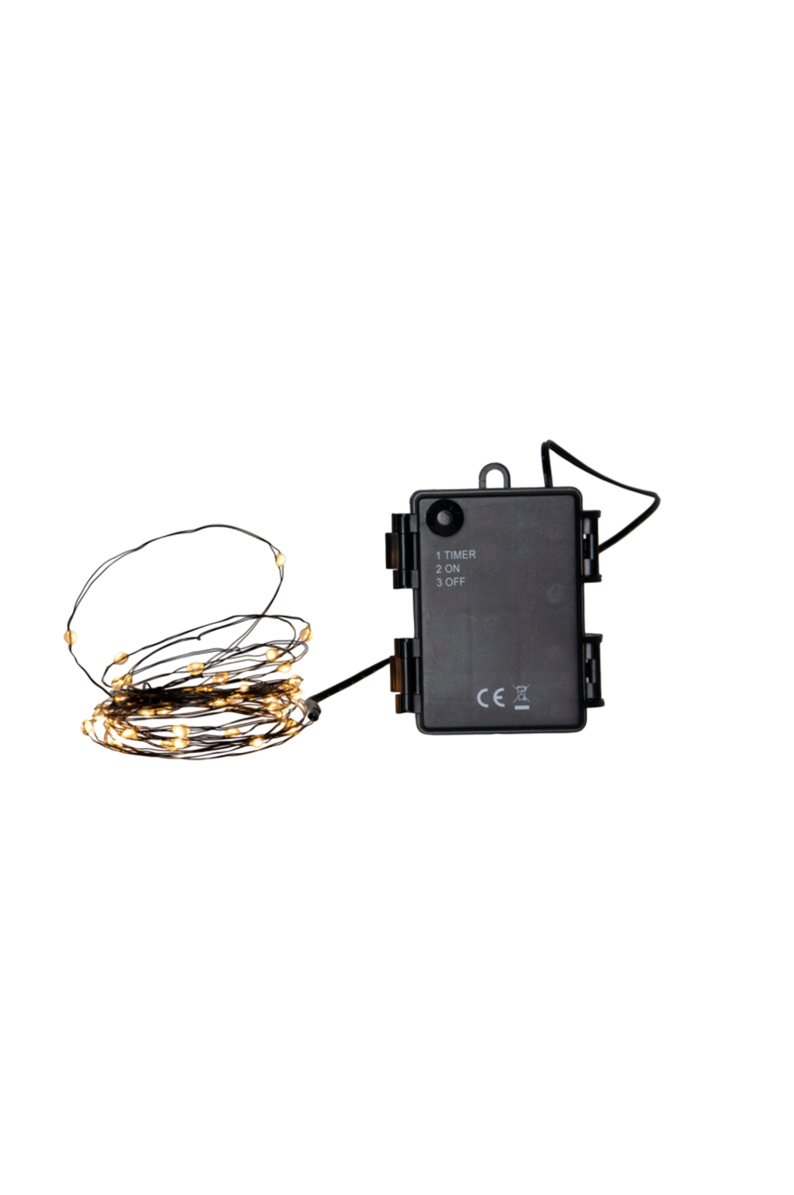 Paristokäyttöinen valoketju, jossa on 40 led-pisaraa dew, paristokotelo ulkokäyttöön. Kaapeli on musta ja siinä on lämpimän valkoinen valo. Ajastintoiminnon avulla on helppo asettaa, milloin ketjun tulisi syttyä. Hyödyllinen valoketju kukka-asetelmiin jne.