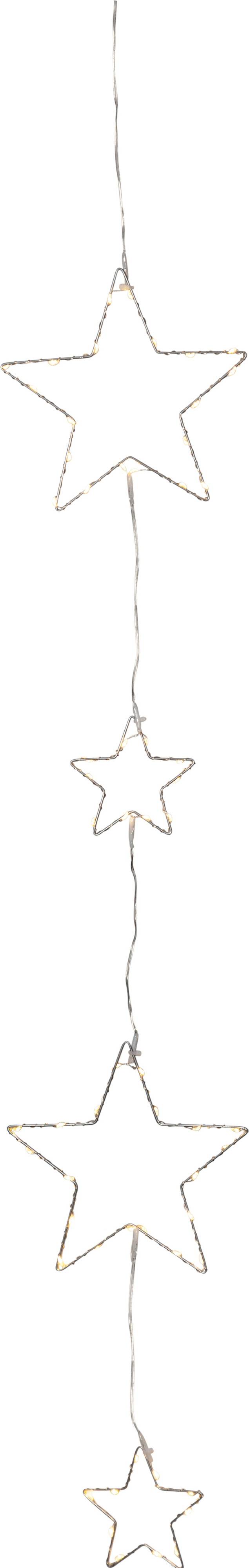 Koristeköynnös, jossa metallitähtiä. Saatavana kahdessa koossa, joiden leveydet ovat 20 ja 10 cm. Isossa tähdessä on 20 lämpimän valkoista LED-lamppua ja pienessä 10 lämpimän valkoista LED-lamppua. Kaunis koriste, jonka voi sekä ripustaa että asettaa vaakatasoon. Paristokäyttöinen koriste ajastintoiminnolla. Sisäkäyttöön.