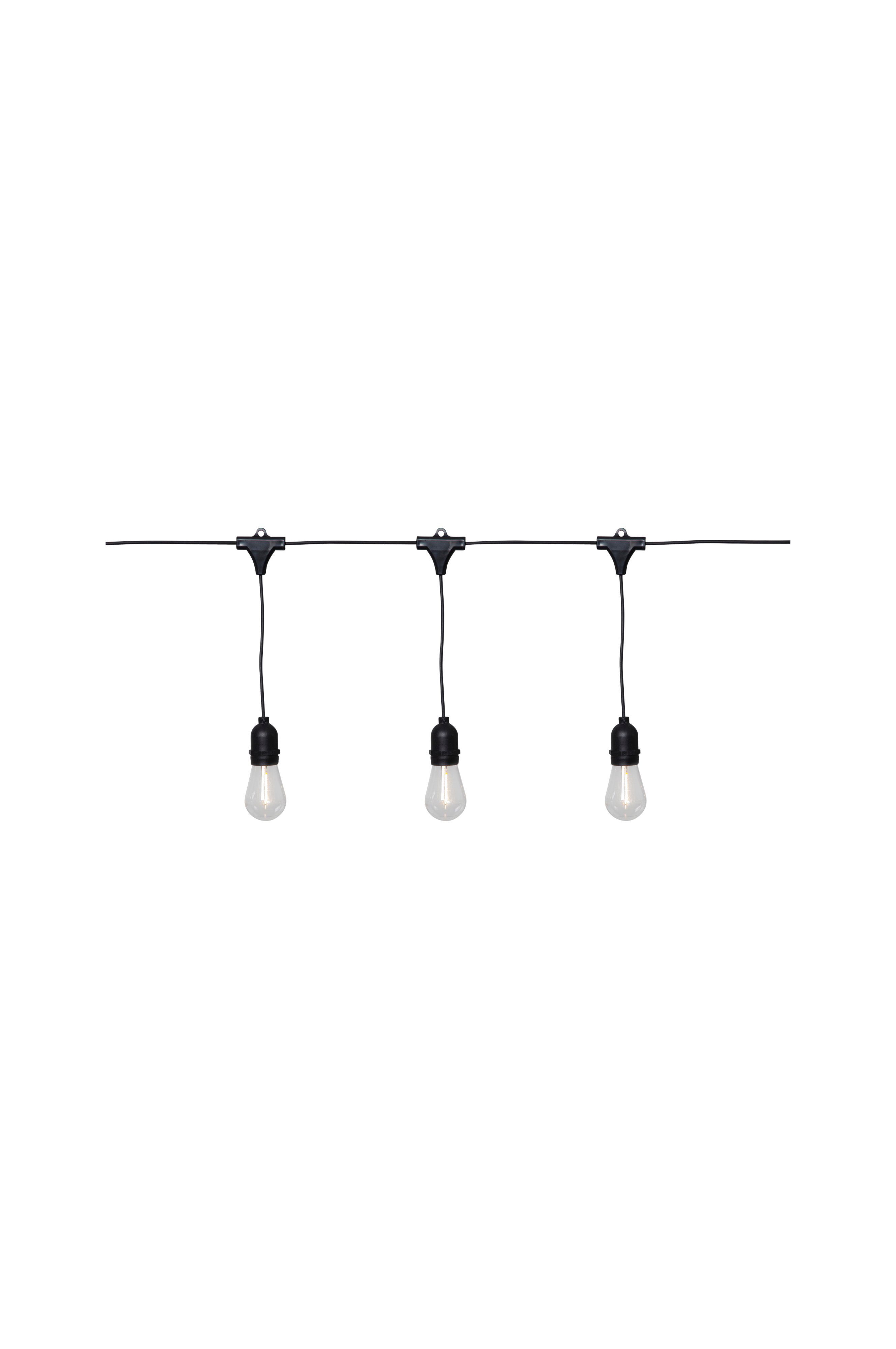 Juhlavaloköynnös. 10 kirkasta lampunkupua, joiden sisällä filamentti-LED. Hieno valoköynnös sopii sekä arkeen että juhlaan. Valaisee kauniisti pimeässä. Muuntaja: 24 V DC 1.8 W, IP44, Schuko-pistoke. Liitäntäjohdon pituus 500 cm. Lamppujen välinen etäisyys 40 cm.