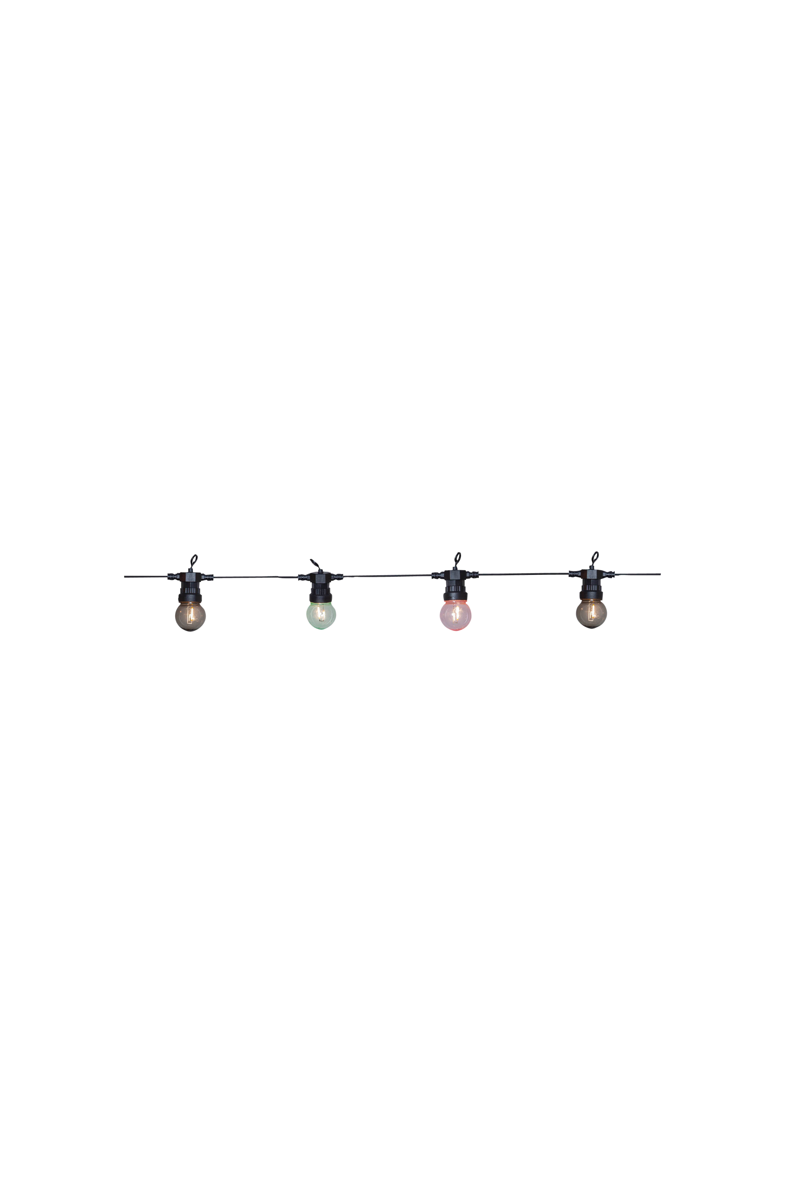Juhlavalosarja, jossa läpikuultavat värilliset lamput ja 20 LED-valonlähdettä (filamentti). Ihana valosarja sopii sekä arkeen että juhlaan. Valaisee kauniisti pimeässä. Musta johto ja valonlähteiden yläpuolella koukut valosarjan helppoa ripustamista varten.