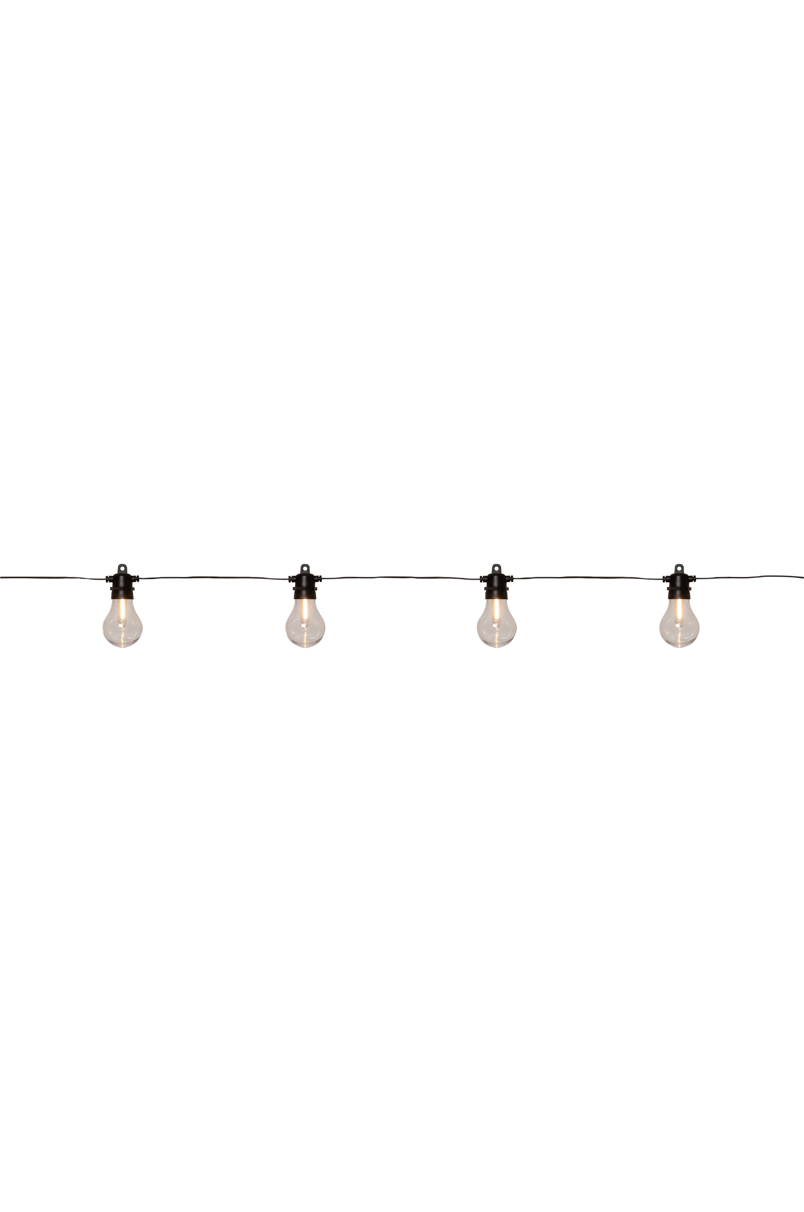 Uusi sarja valosarjoja, joissa vaihdettavat LED-lamput. Saatavana kaksi pituutta. Valosarjan, jossa 10 LED-valoa, pituus n. 7 m, ja valosarjan, jossa 18 LED-valoa, pituus n. 13,5 m. Valonlähde on LED-filamentti, joka antaa tyylikkään lämpimän valkoisen valon. Läpikuultava kotelo koossa A60. Saatavana myös varaosana. Sopii täydellisesti arkeen ja juhlaan. Muuntajassa ajastintoiminto, yksi painallus ja valosarja välkkyy, ajastintoiminto päällä. Pakkauksessa on mukana yksi varalamppu.