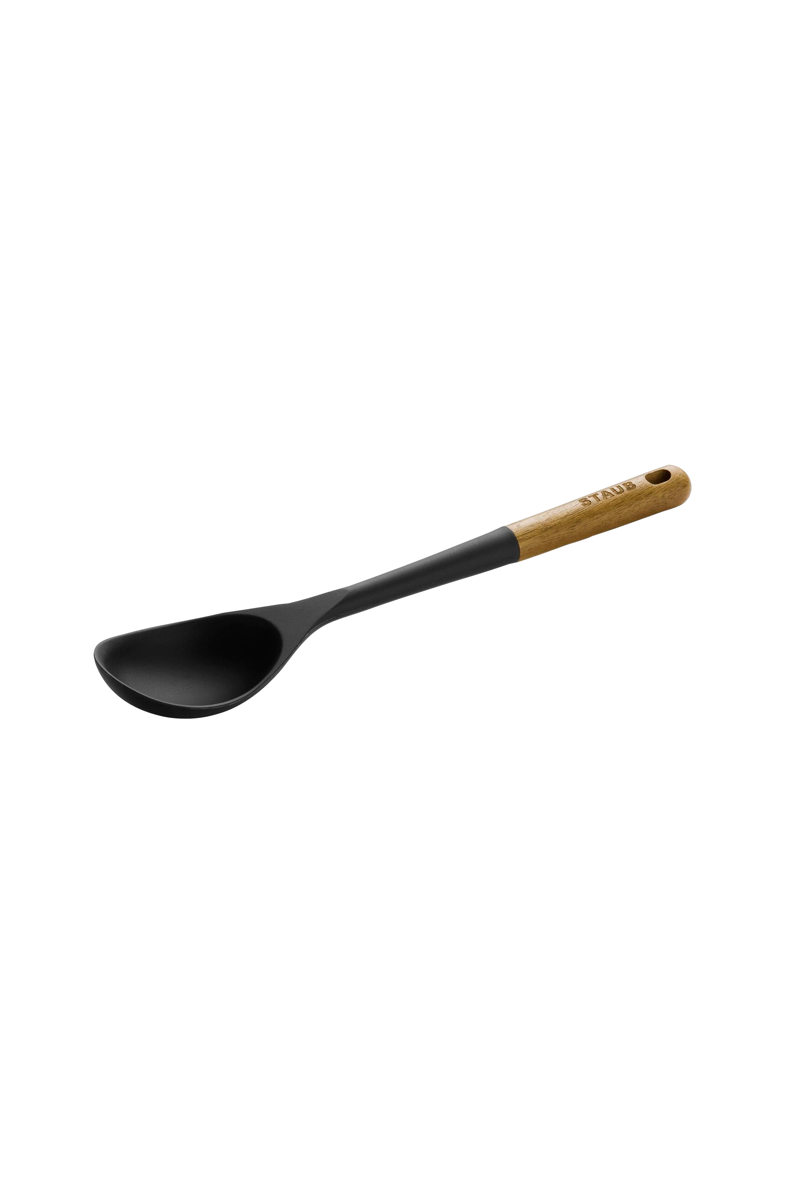 Pitkä kahva on valmistettu akasiapuusta, ja lusikkaosa on valmistettu mustasta mattapintaisesta silikonista. Laadukas materiaali sopii kaikille pinnoille, myös tarttumattomille pinnoitteille ja emaloidulle valuraudalle. Erittäin kestävä ja lämmönkestävä.