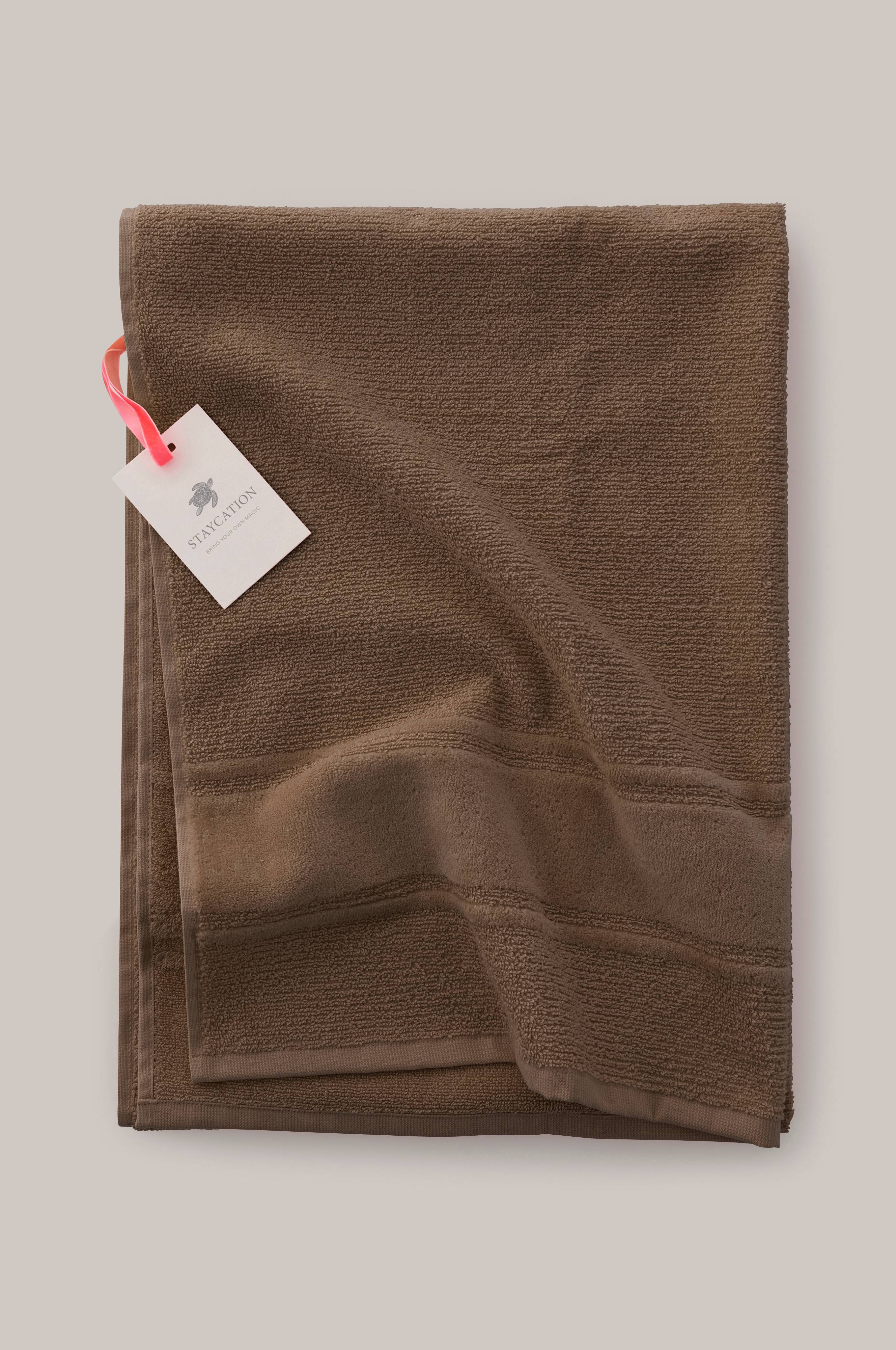 Pehmeää, kevyesti pintakuvioitua puuvillafroteeta. Veluuriraita alhaalla. Koko 70 x 140 cm. Paino 520 g/m2. Valmistettu Portugalissa.