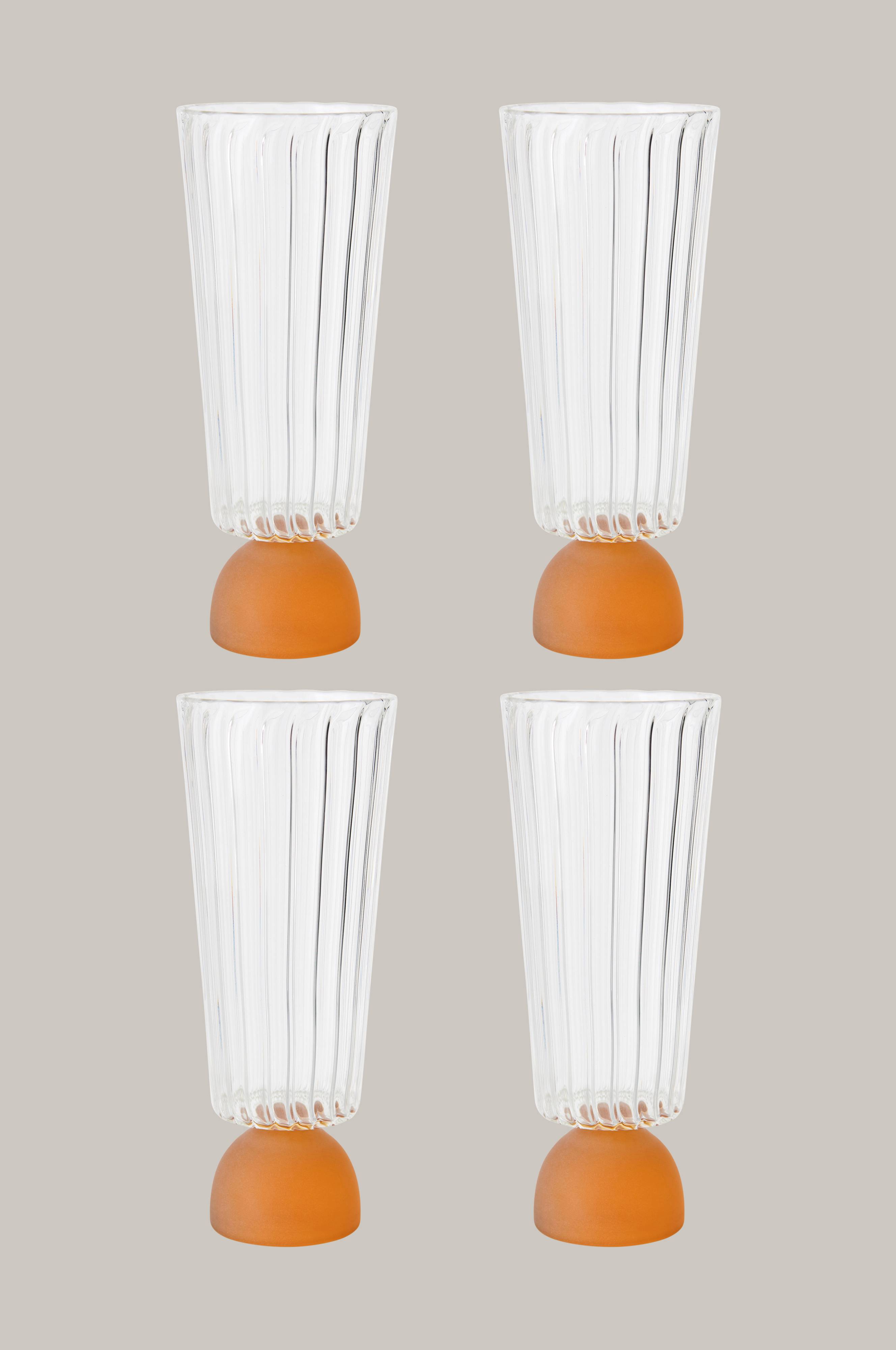 • Neljä käsityönä valmistettua pitkä juomalasia