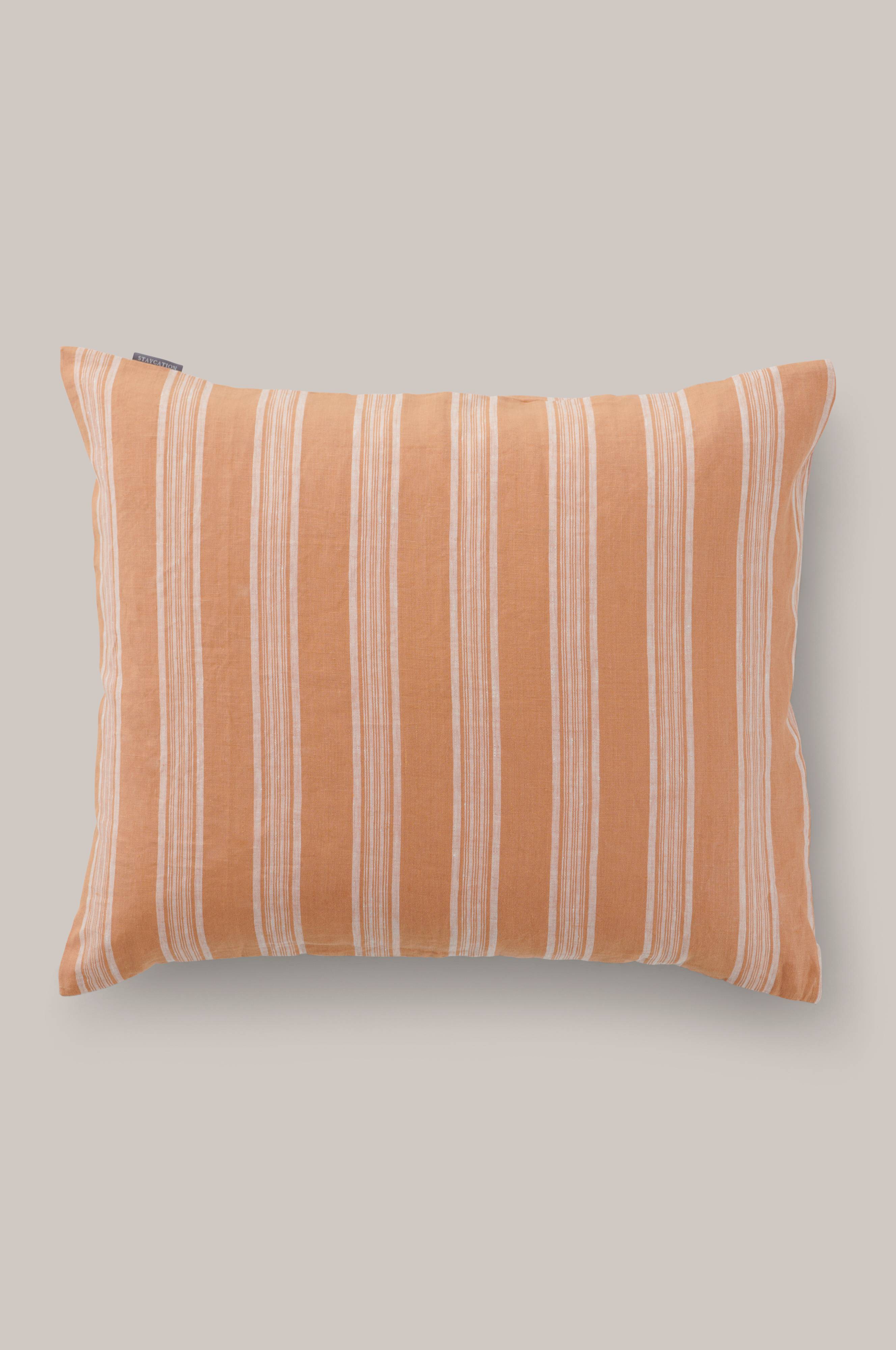 Tyynyliina 100% pellavaa. Mankeloidussa pellavassa on kaunis hohto. Lankavärjätyt raidat.