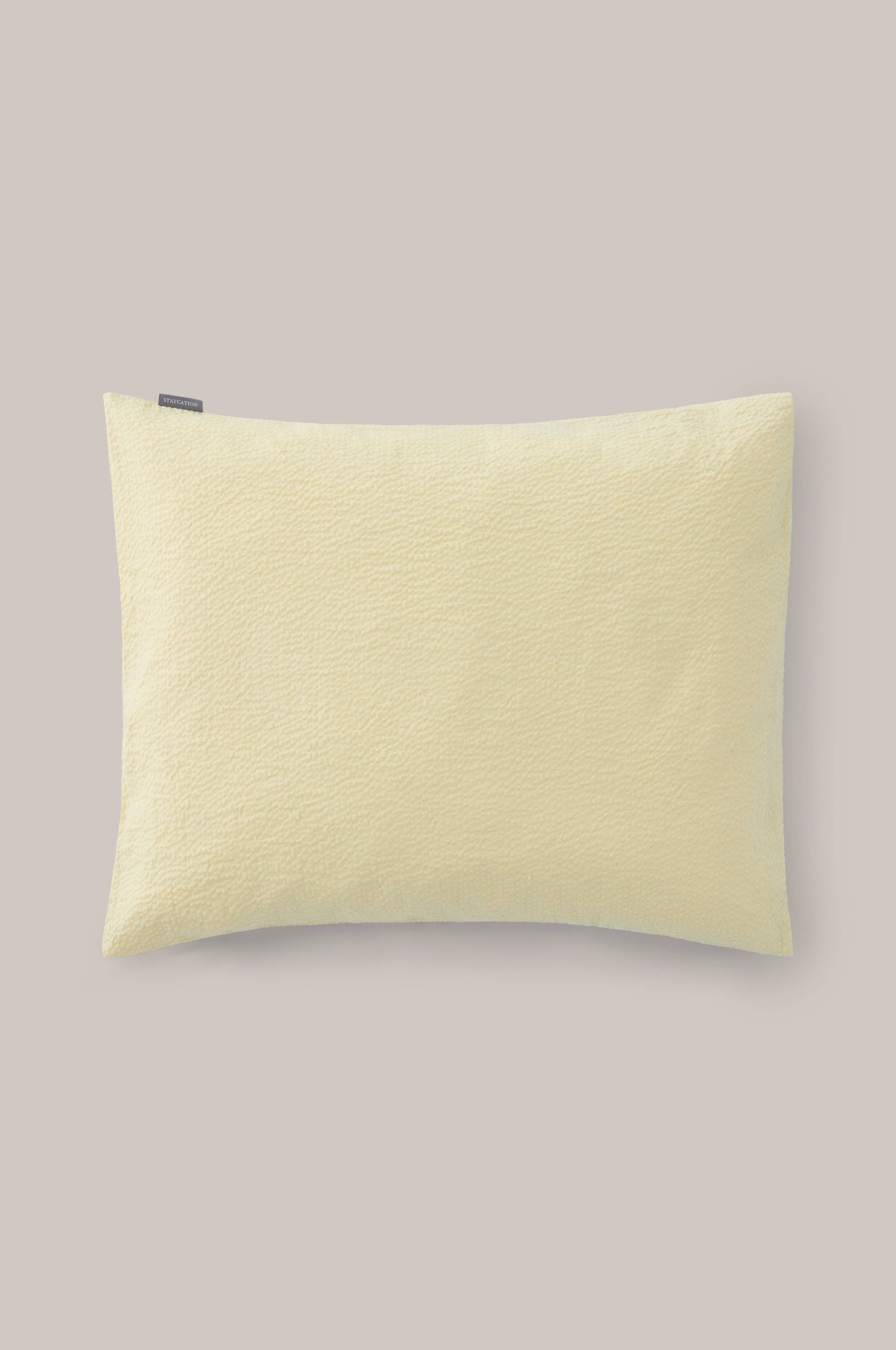Tyynyliina ekologisesta kampapuuvillasta valmistettua kreppimateriaalia (seersucker), jossa klassinen pintakuvio ja pystysuorat raidat.