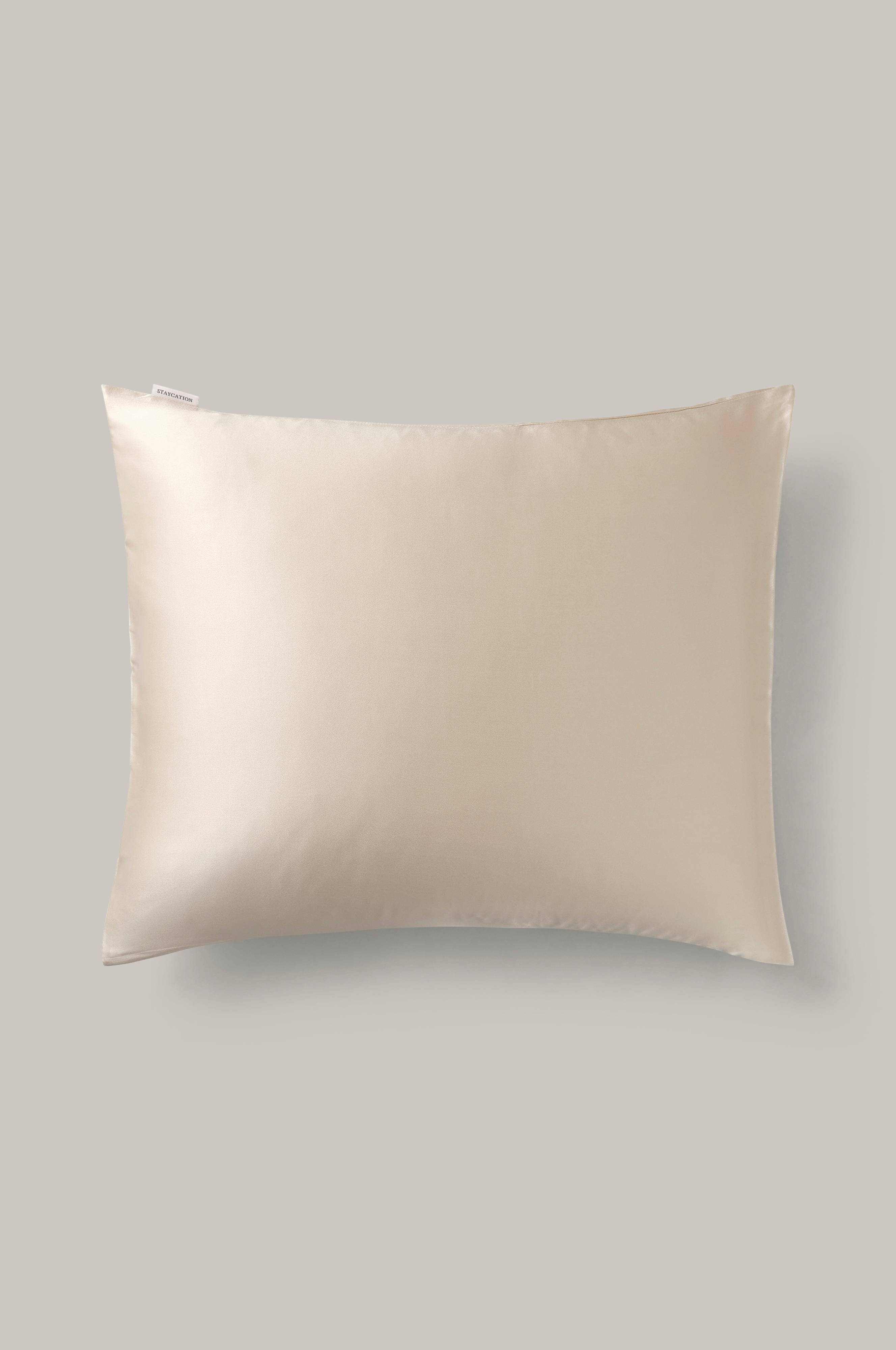 Tyynyliina pehmeää ja hohtavaa mulperisilkkiä. Silkkinen tyynyliina tuntuu pehmeältä ja mukavalta ihoa vasten sekä lämmittää kylmällä ja tuntuu viileältä lämpimällä.