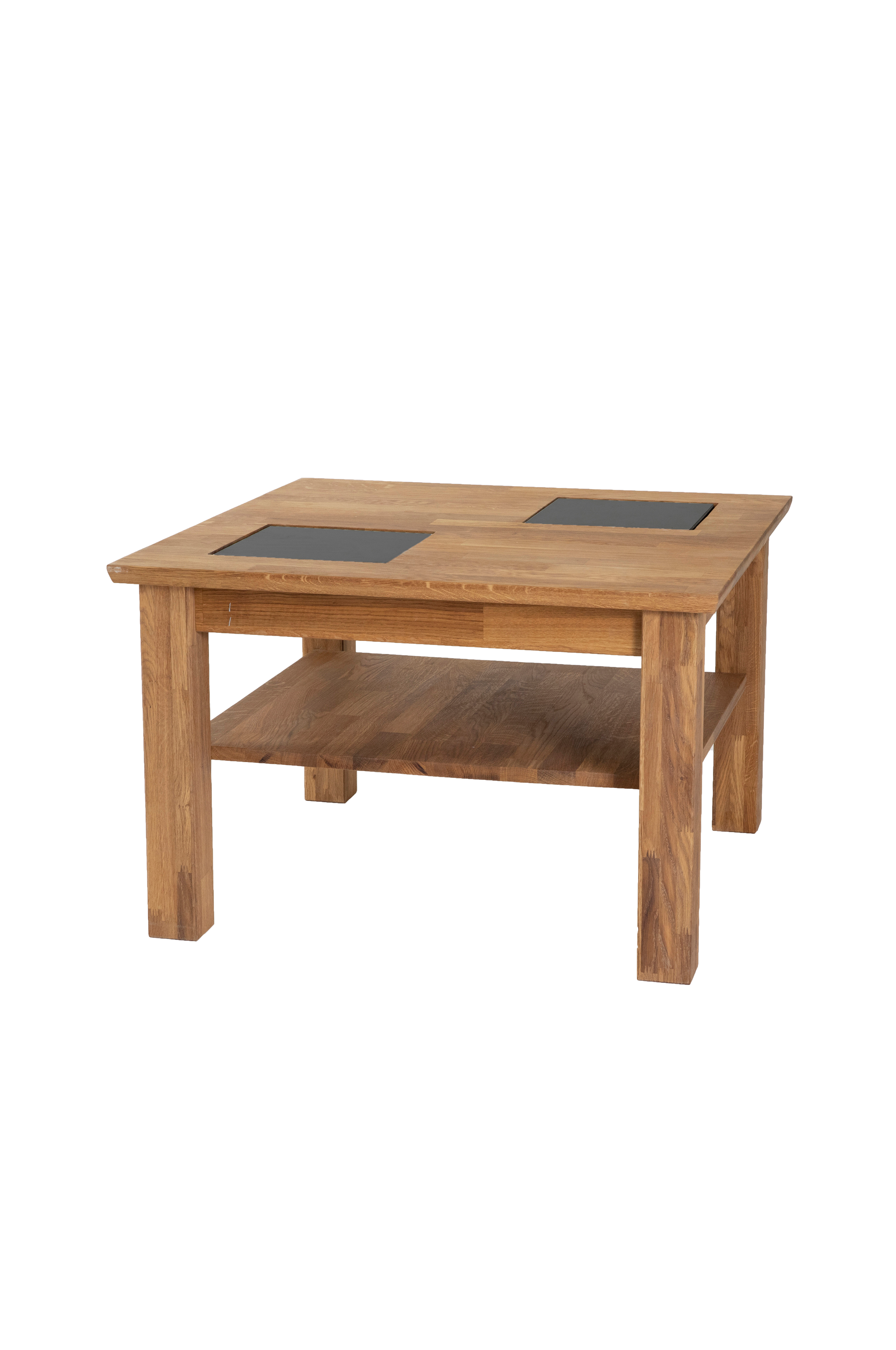 Perinteinen Bern-sohvapöytä, jossa tyylikkäät yksityiskohdat mustaa graniittia. Mitat 80x80x52 cm.