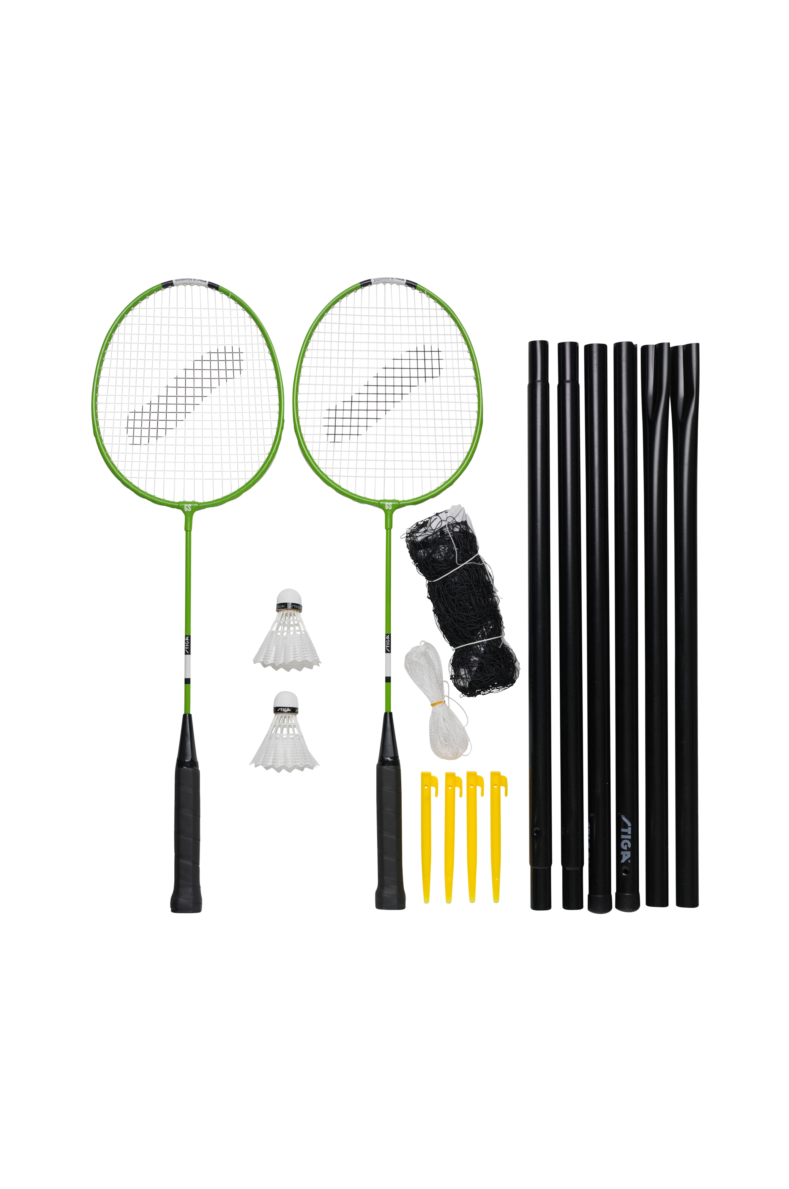 - Kaksi senior-mailaa sekä verkko ja tolpat pihapeleihin ystävän kanssa. Mukana myös kantolaukku ja kaksi sulkapalloa.