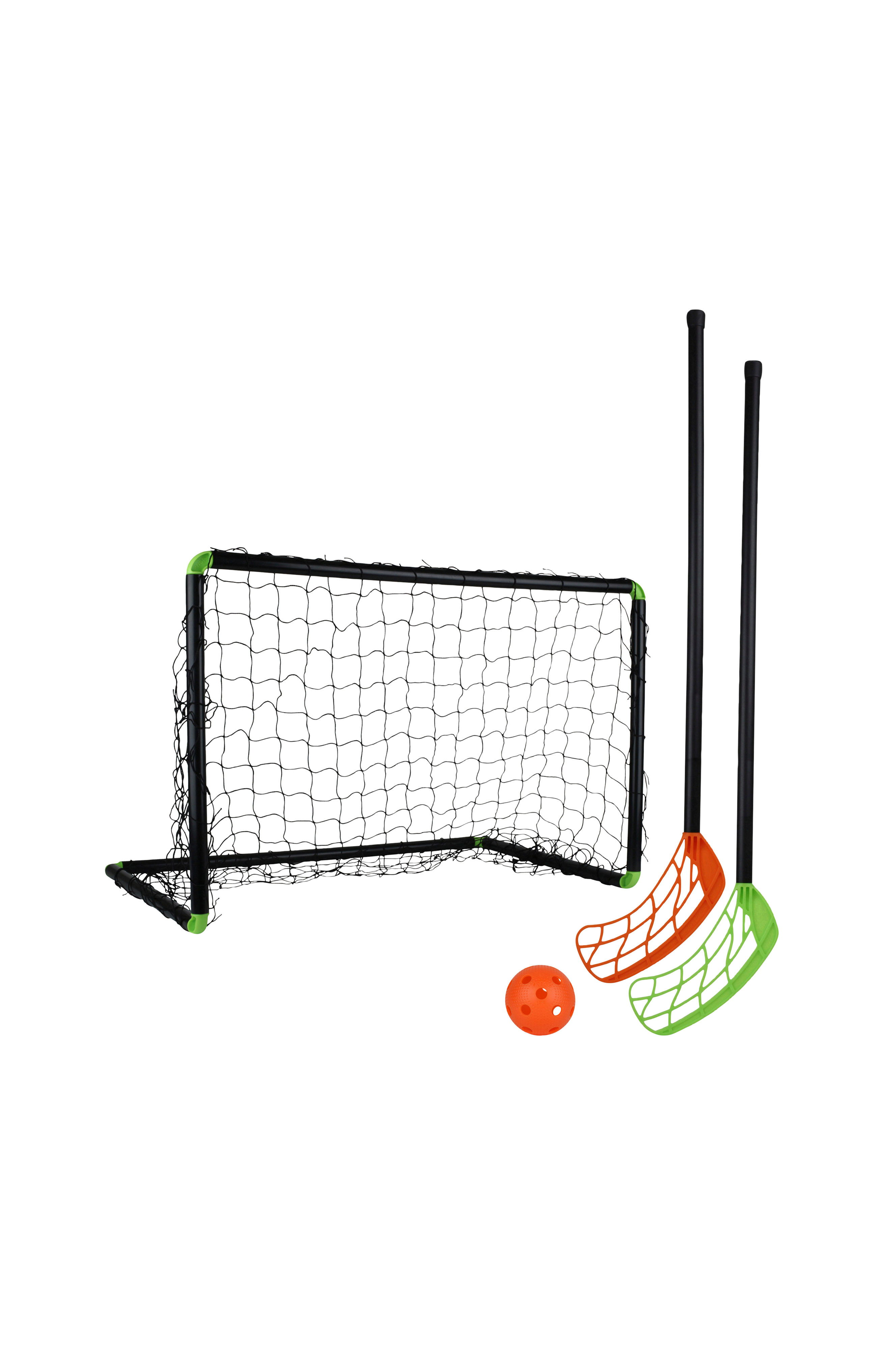 Kattava salibandysetti harrastelijalle! Kaksi mailaa (60 cm:n varsi), pallo ja maali.