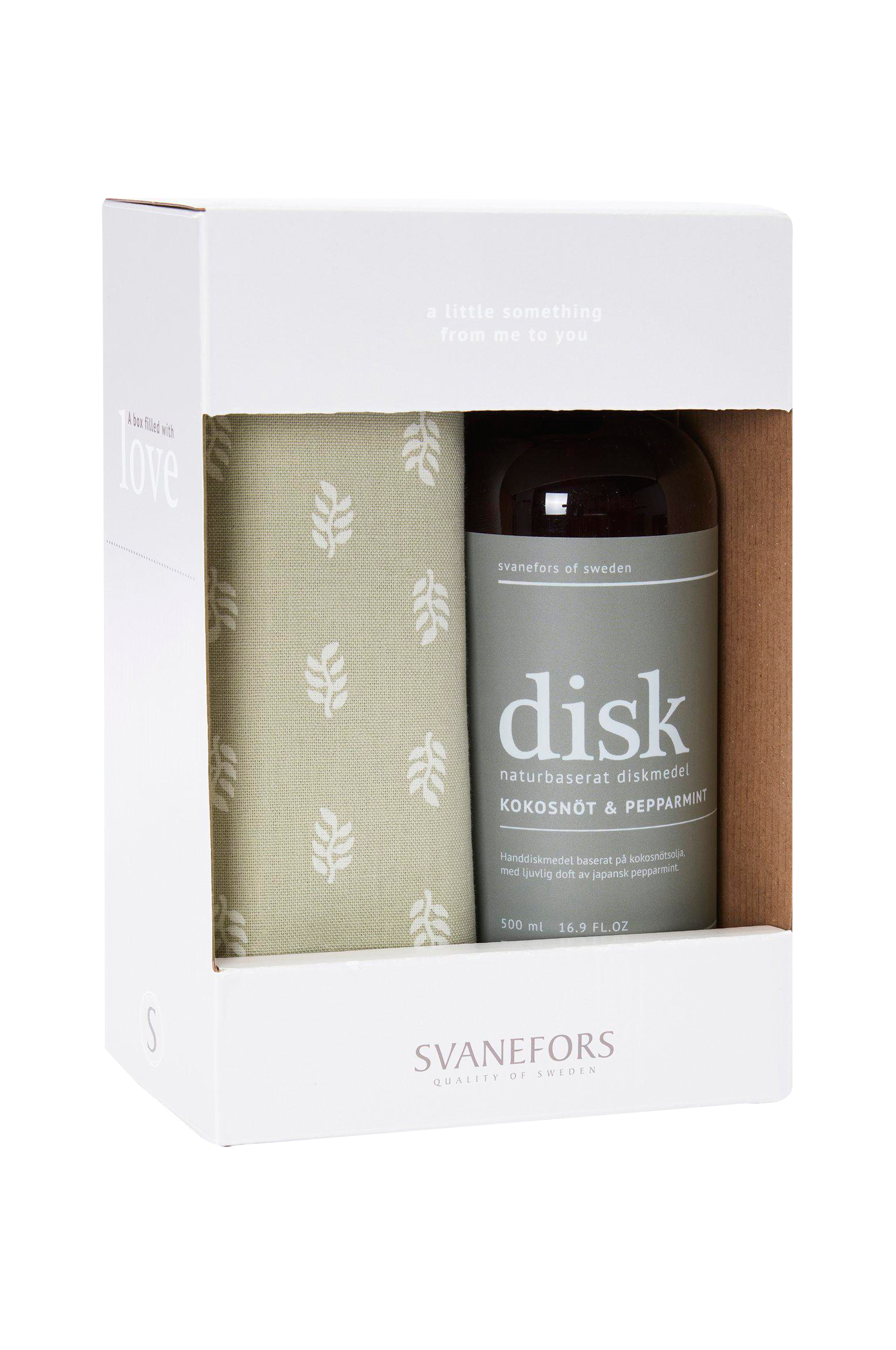 Käsiastianpesuaine ja keittiöpyyhe tyylikkäässä lahjapakkauksessa. Keittiöpyyhe, jossa lohkopainettu kuvio, 100% puuvillaa, 50x70 cm. Kookosöljypohjainen astianpesuaine puhdistaa hellävaraisesti eikä kuivata käsiä tai saa niitä punoittamaan. Sisältää myös japanilaista piparminttua, jossa on ihanan raikas tuoksu. Pullon koko 500 ml.