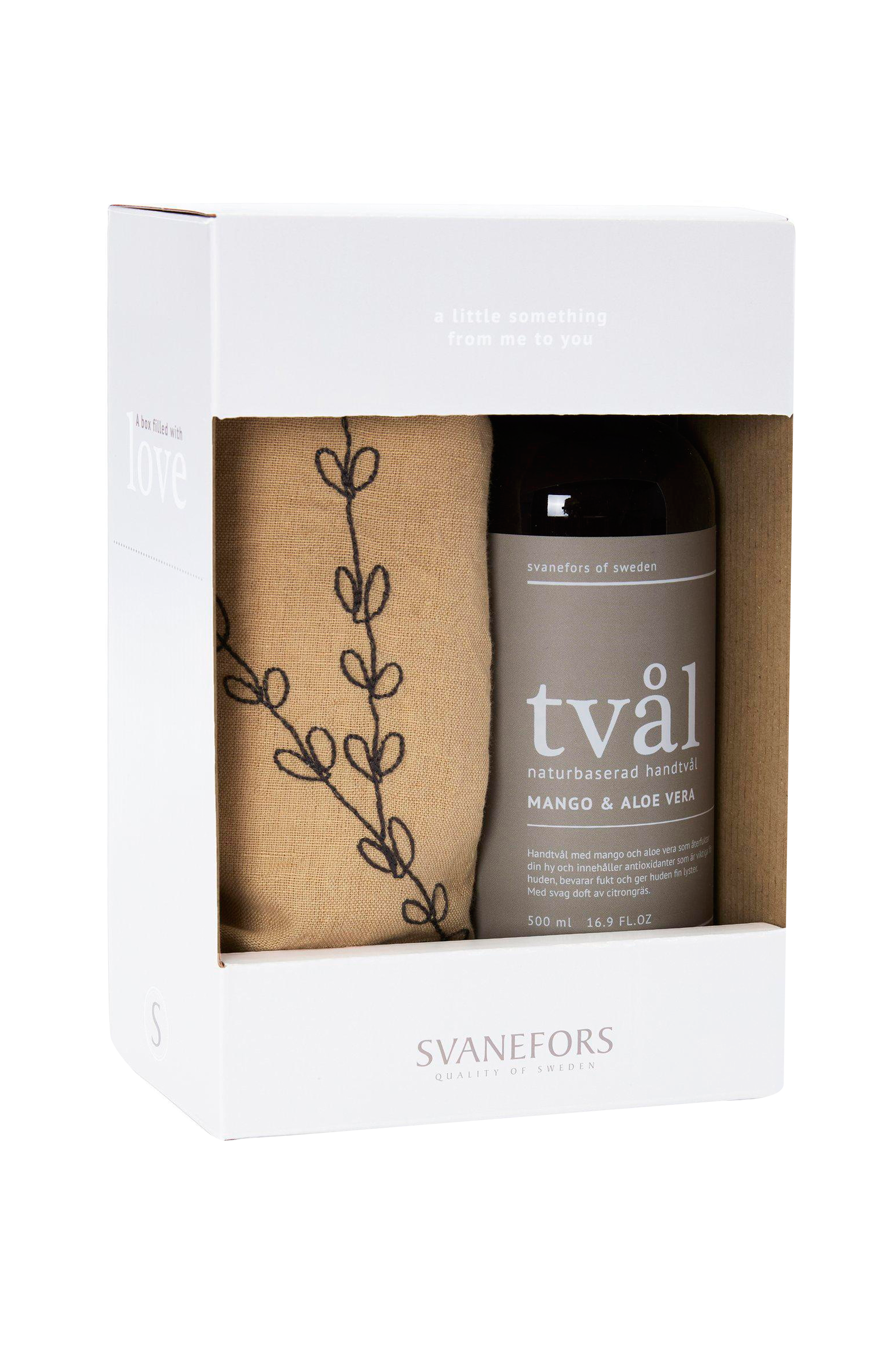 Käsisaippua ja keittiöpyyhe tyylikkäässä lahjapakkauksessa. Keittiöpyyhe on kooltaan 50x70 cm, ja se on 50% pellavaa ja 50% puuvillaa. Siinä on kirjailtu kuvio alakulmassa. Mangoa ja aloe veraa sisältävä kosteuttava käsisaippua. Sisältää iholle tärkeitä antioksidantteja, jotka säilyttävät kosteuden ja antavat iholle hohtoa. Pullon koko 500 ml.