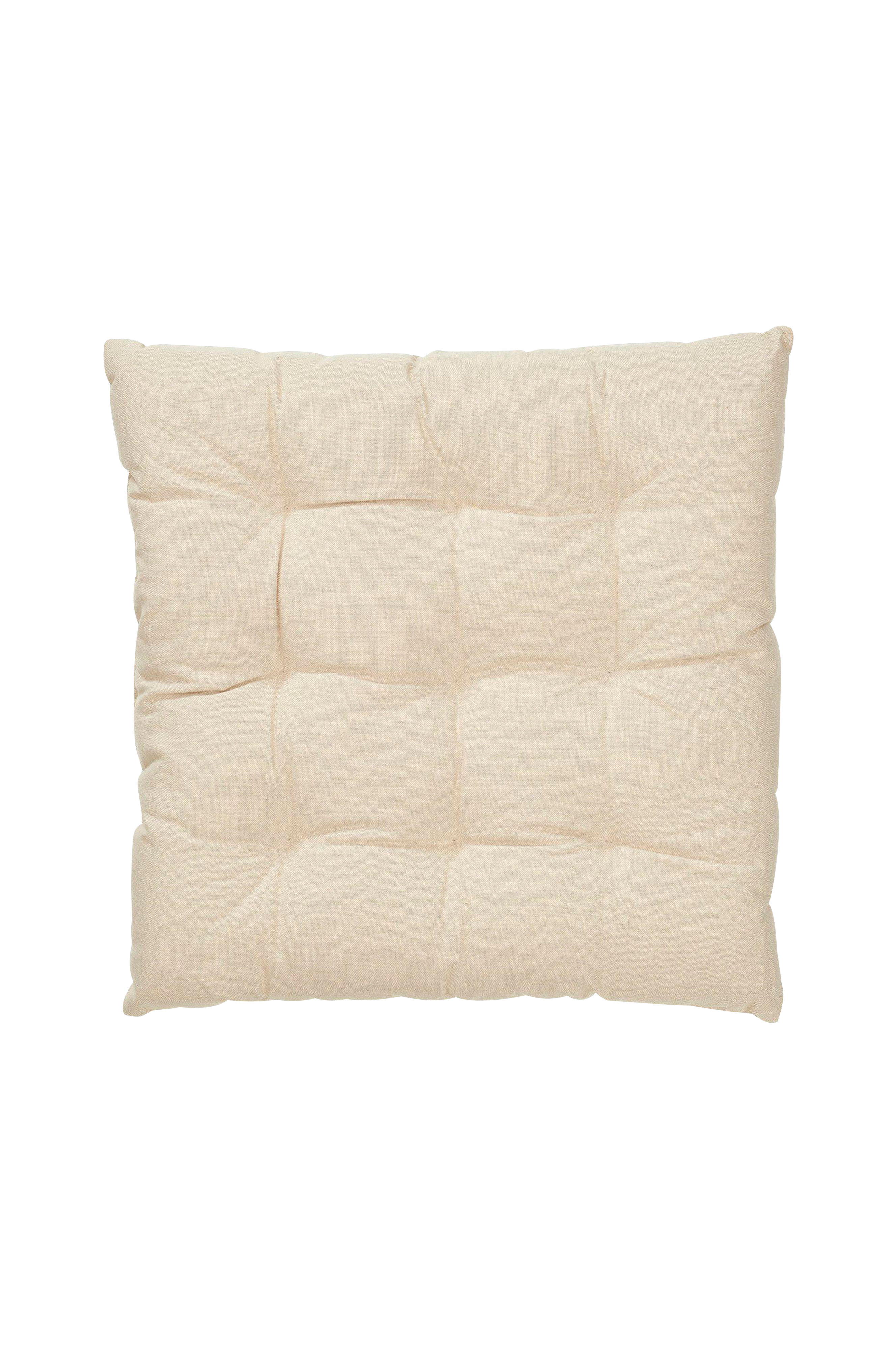 Istuinpehmuste pehmeää puuvillaa. Koristepistot ja polyesteritäyte. Saatavana myös istuintyynynä. Koko 40x40 cm. 100% puuvillaa.