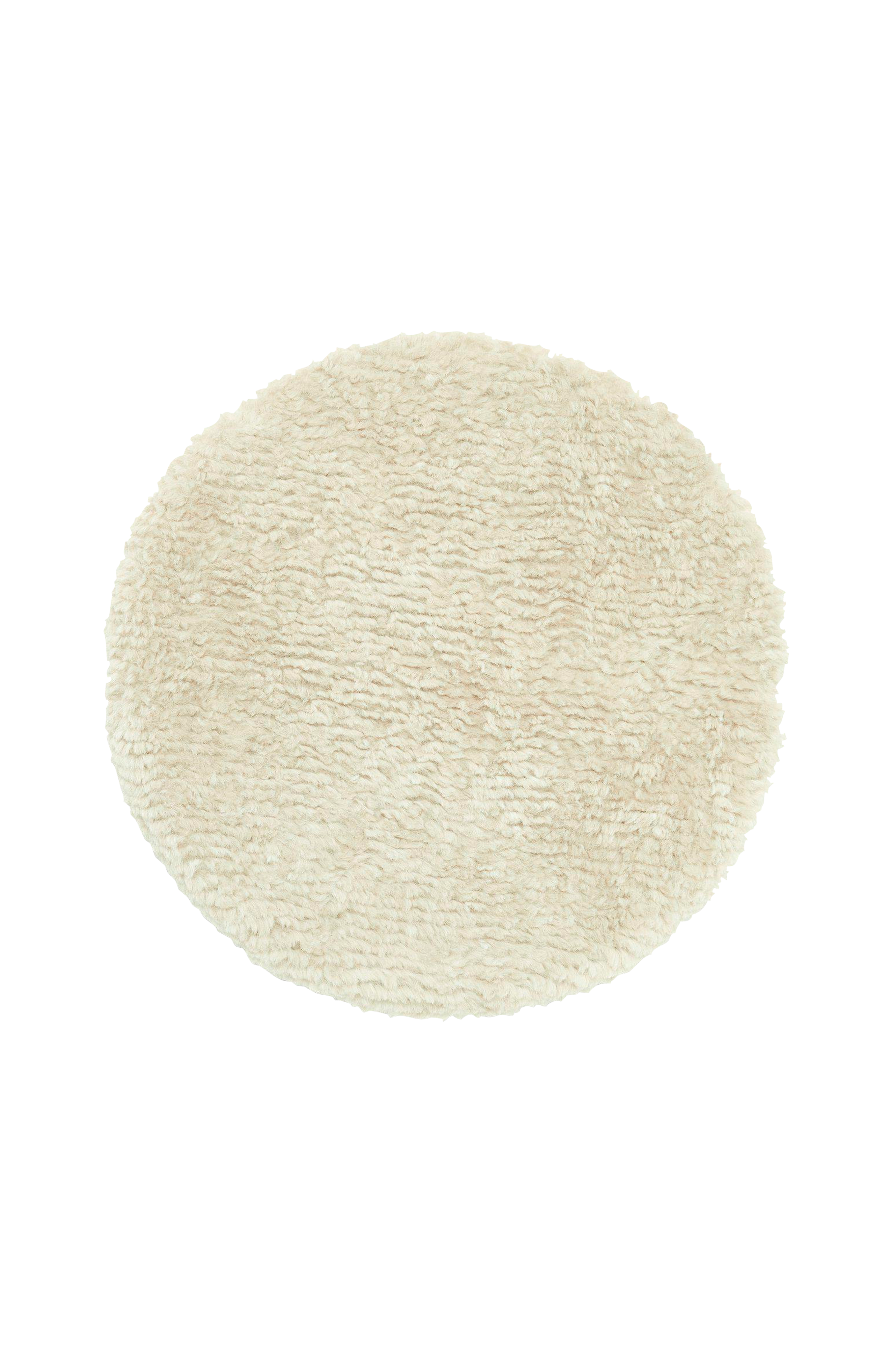 Pyöreä istuintyyny, jonka etupuoli villamaista lampaankarvajäljitelmää ja alapuoli pehmeää ja liukumatonta kangasta. Tyynyn täytteenä vaahtomuovilevy. 100% polyesteriä.
