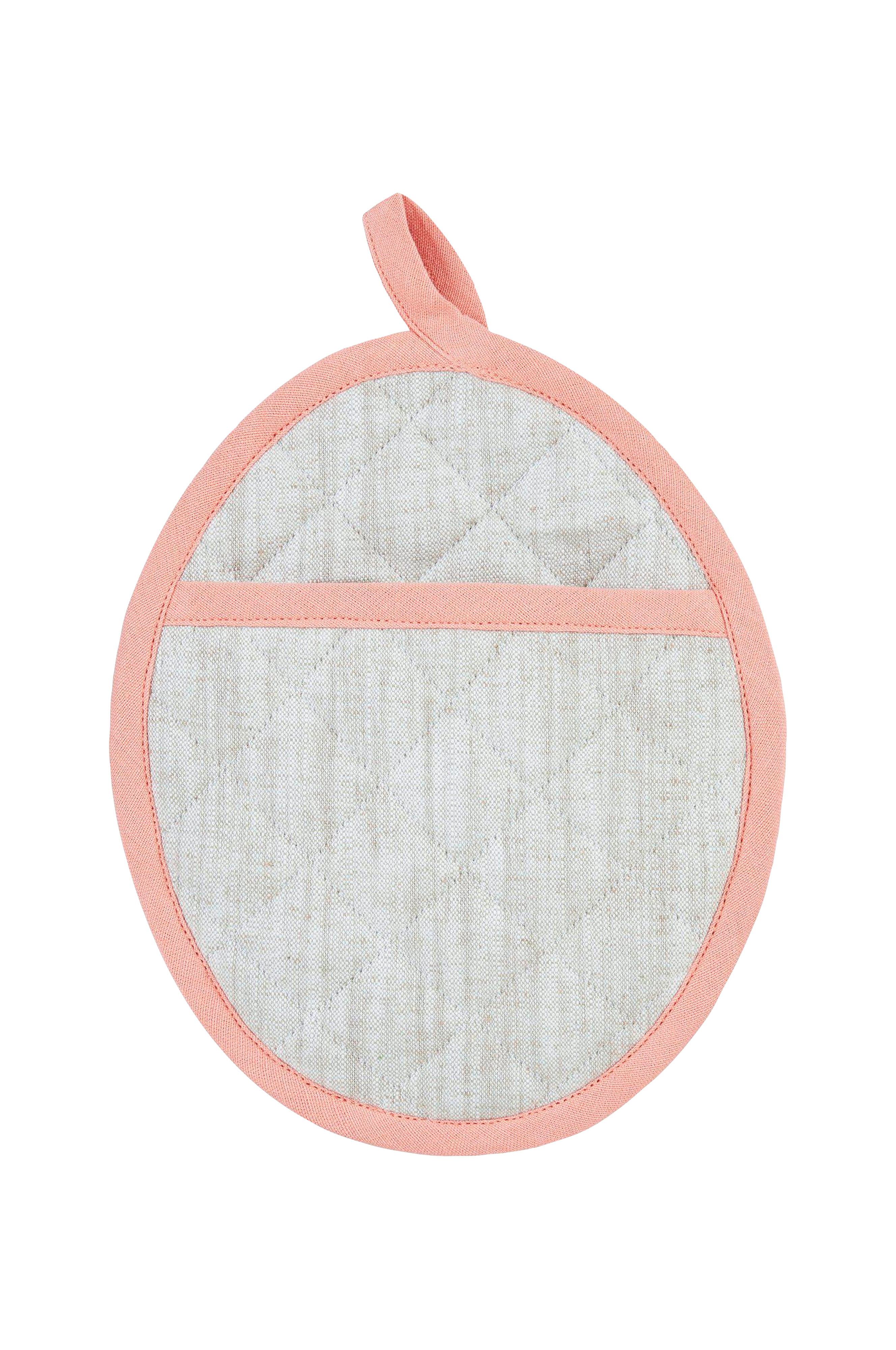 Patalappu puuvillaa/pellavasekoitetta. Chambray-kudos antaa kankaalle pellavamaisen ilmeen. Korallinvärinen nauhareunus ja ripustuslenkki. Patalapun mitat ovat 15x25 cm, ja tuote on standard 100 by oeko-tex® -sertifioitu. Sertifiointi takaa, että tuote on testattu eikä sisällä terveydelle ja ympäristölle haitallisia aineita. 90% puuvillaa, 10% pellavaa.