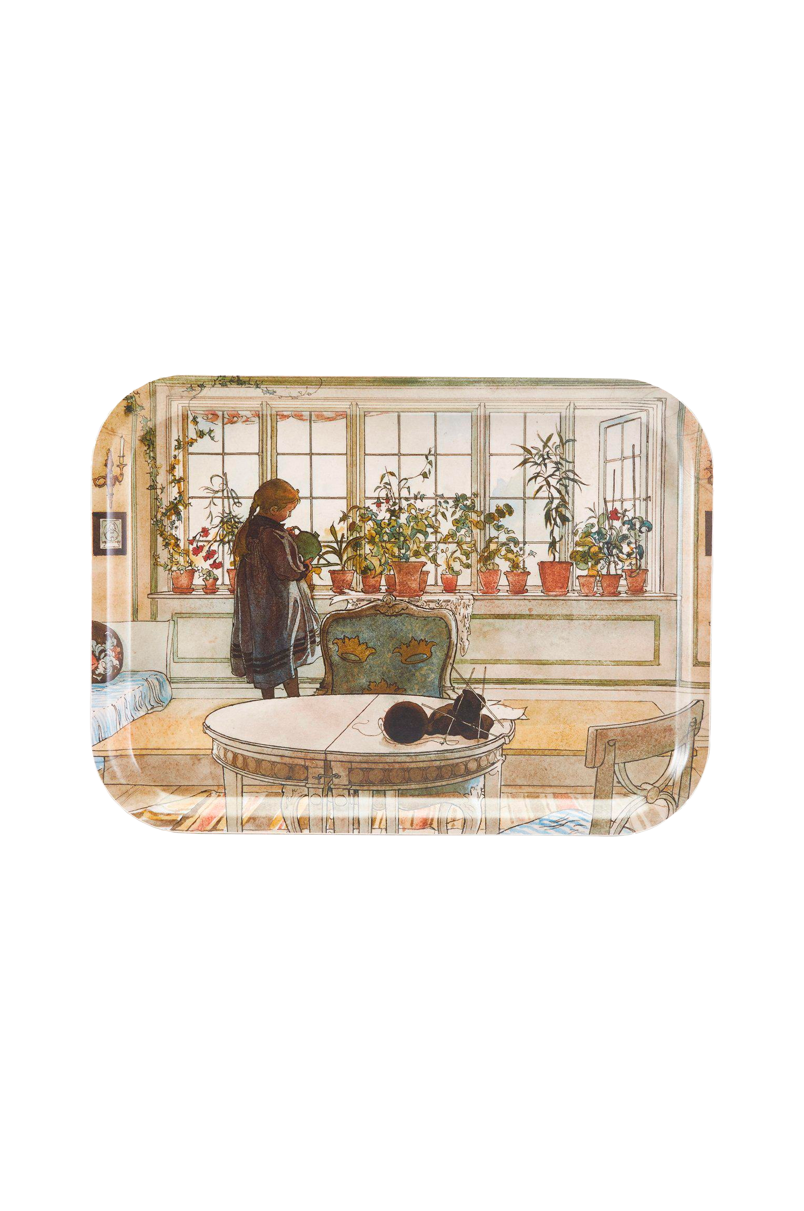 Karin ja Carl Larssonin taiteellisuudet liittyivät vahvasti toisiinsa - Karin loi kodin, jota Carl kuvasi. Yhdessä he loivat aiheet, jotka kuvaavat Ruotsia ja joita rakastetaan kaikkialla maailmassa. Ostamalla tuotteita virallisilta yhteistyökumppaneilta kuluttaja tukee omalta osaltaan Carl Larsson -tilaa ja sen ainutlaatuista kulttuuriperintöä. Ruotsissa valmistettu laminaattitarjotin on FSC-sertifioitu, eli sen sisältämä puumateriaali on peräisin kestävästi ja vastuullisesti hoidetuista metsistä. Tarjotin on hyväksytty elintarvikekäyttöön. Mitat 20x27cm.