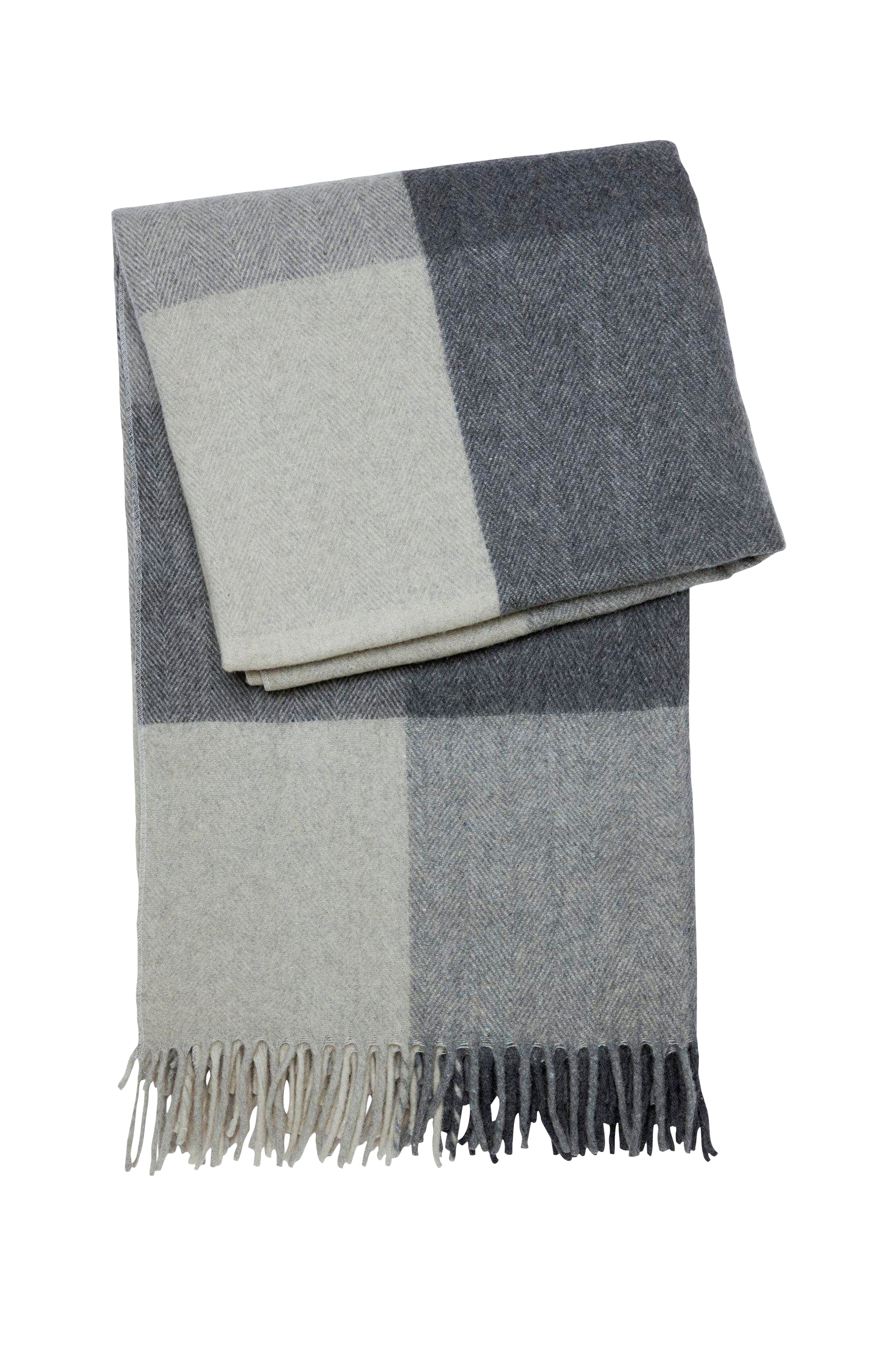 Pehmeä torkkupeitto kierrätettyä villaa, jossa kudottu ruutukuvio. Hapsut lyhyillä sivuilla. 74% villaa, 15% akryyliä, 10% polyesteriä.