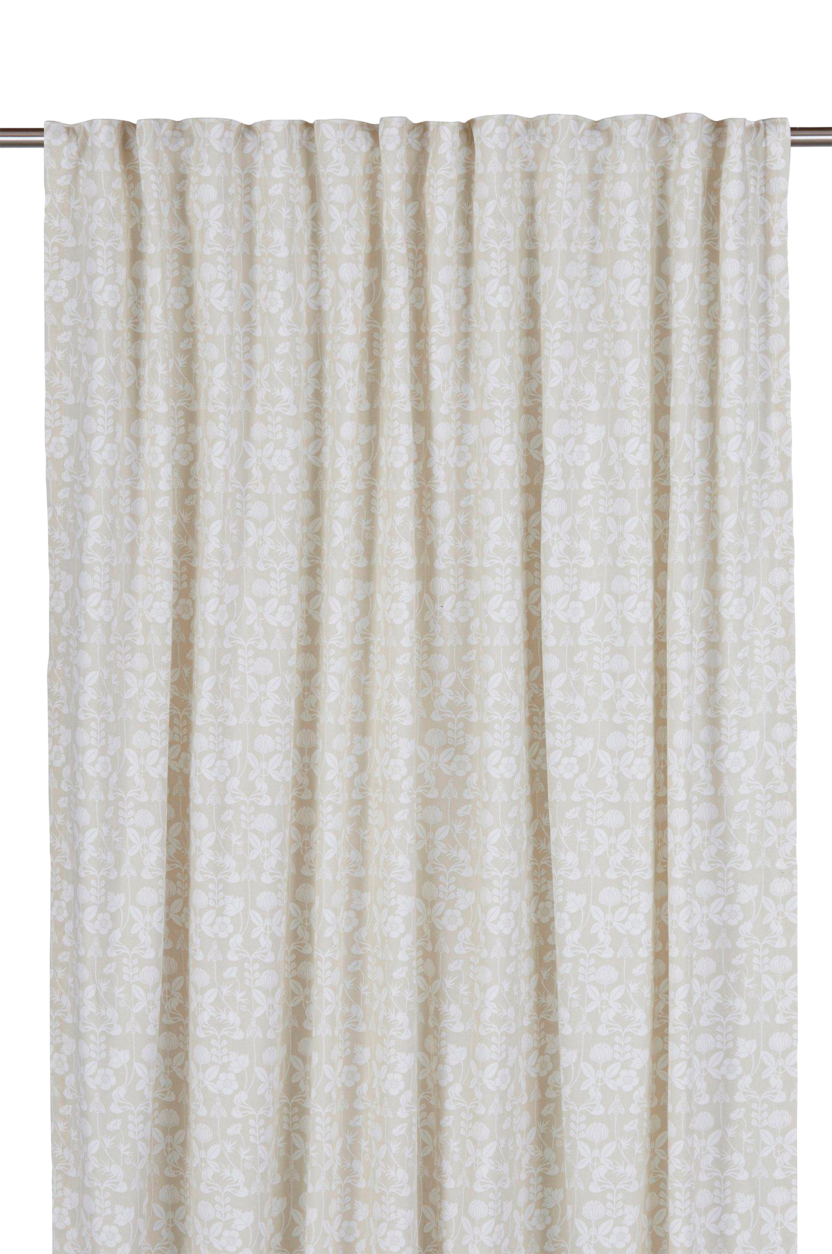 Puuvillaiset monitoimiverhot, joissa Carl Larssonin suunnittelema painettu kuvio. 2 verhoa/pakkaus. De mina -kuvio esiintyy joidenkin Carl Larssonin kirjojen alkulehdillä, kuten esimerkiksi kirjassa "De mina". Monitoiminauha yläreunassa, päärmätyt pitkät sivut ja overlock-sauma alareunassa. Pikapaltenauhan avulla voit lyhentää verhot sopivan pituisiksi. Kummankin verhon koko on 140x280 cm. Monitoiminauha on joustava ratkaisu, jonka ansiosta verho voidaan ripustaa sormikoukuilla, rypytysnauhakoukuilla tai suoraan verhotankoon sen mukaan, miten verhon halutaan laskostuvan ja laskeutuvan. 100% puuvillaa.