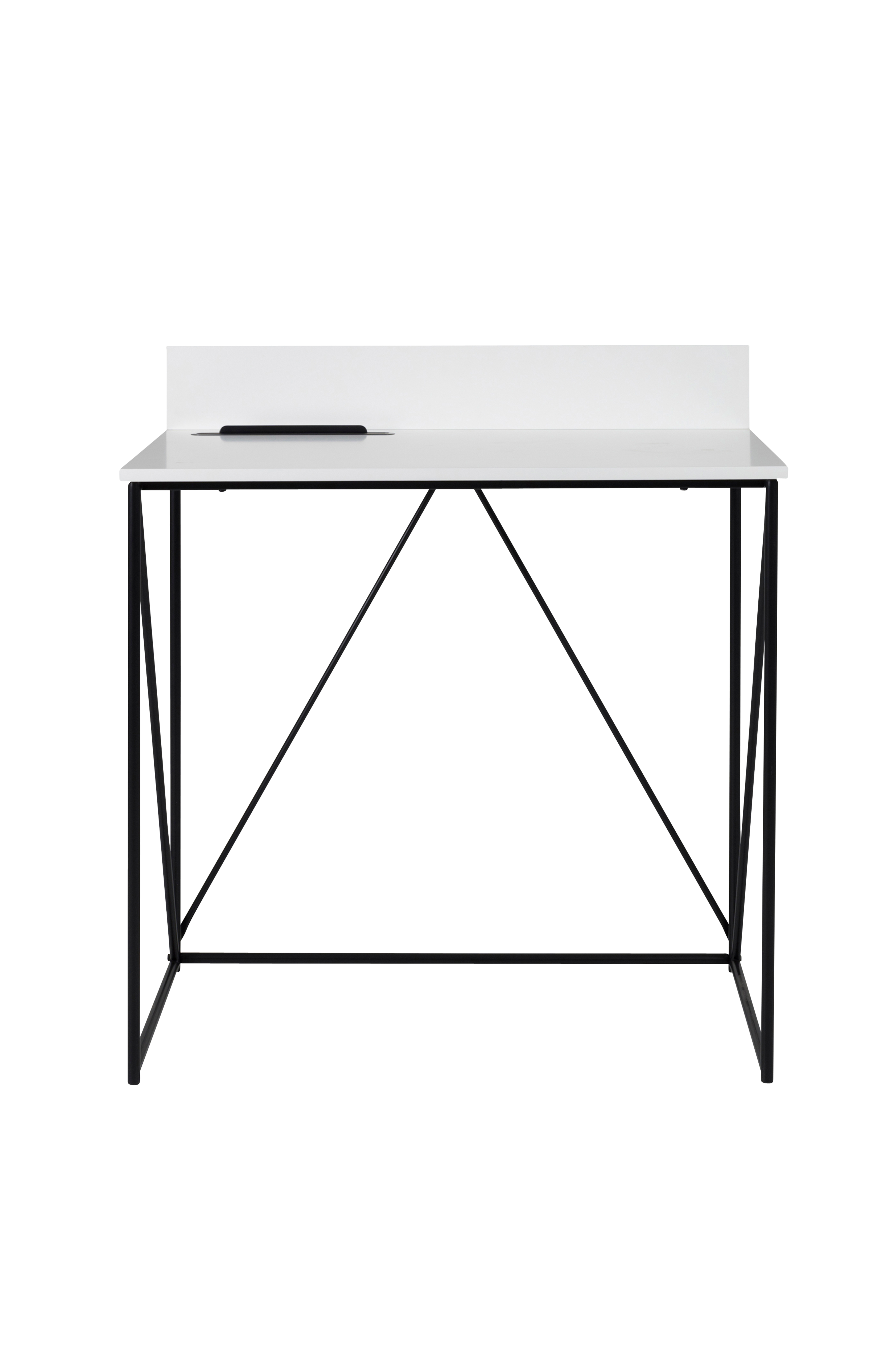 Tell on moderni ja hauska kirjoituspöytä, joka sopii erinomaisesti pieniin tiloihin, kotitoimistoon tai opiskelija-asuntoon. Pöydässä on fiksu pidike, johon voit asettaa tablettisi. Mustaksi maalatut metallijalat antavat huonekalulle nykyaikaisen ja design-tyylisen ilmeen. Mustat jalat ja valkoinen pöytälevy muodostavat tyylikkään yhdistelmän, joka sopii kaikkiin tyyleihin.