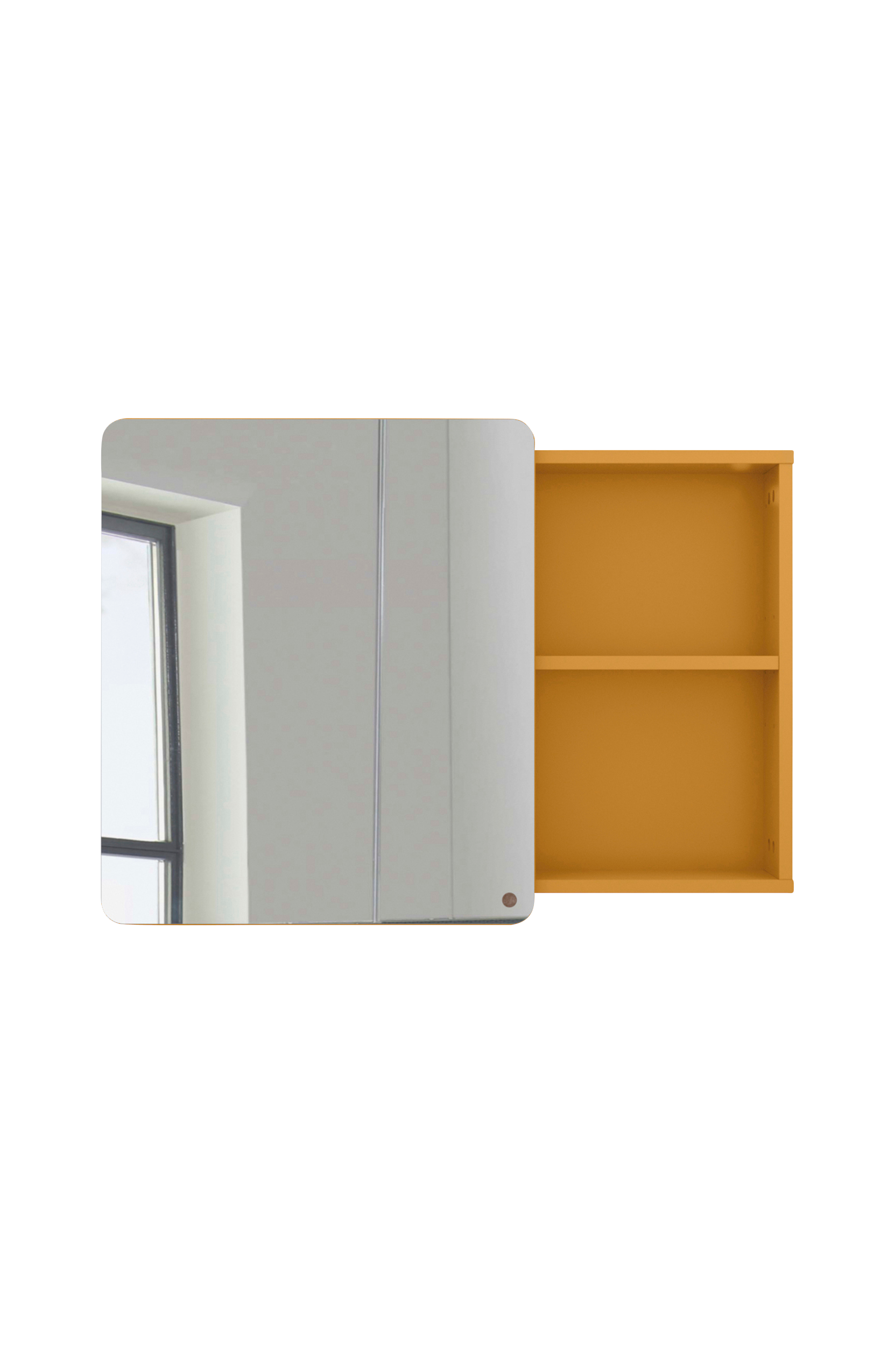 Tom Tailorin Color Bath collectionin peilikaappi. Avoin hyllykkö peilin oikealla puolella ja 1 hyllytaso peilioven takana.