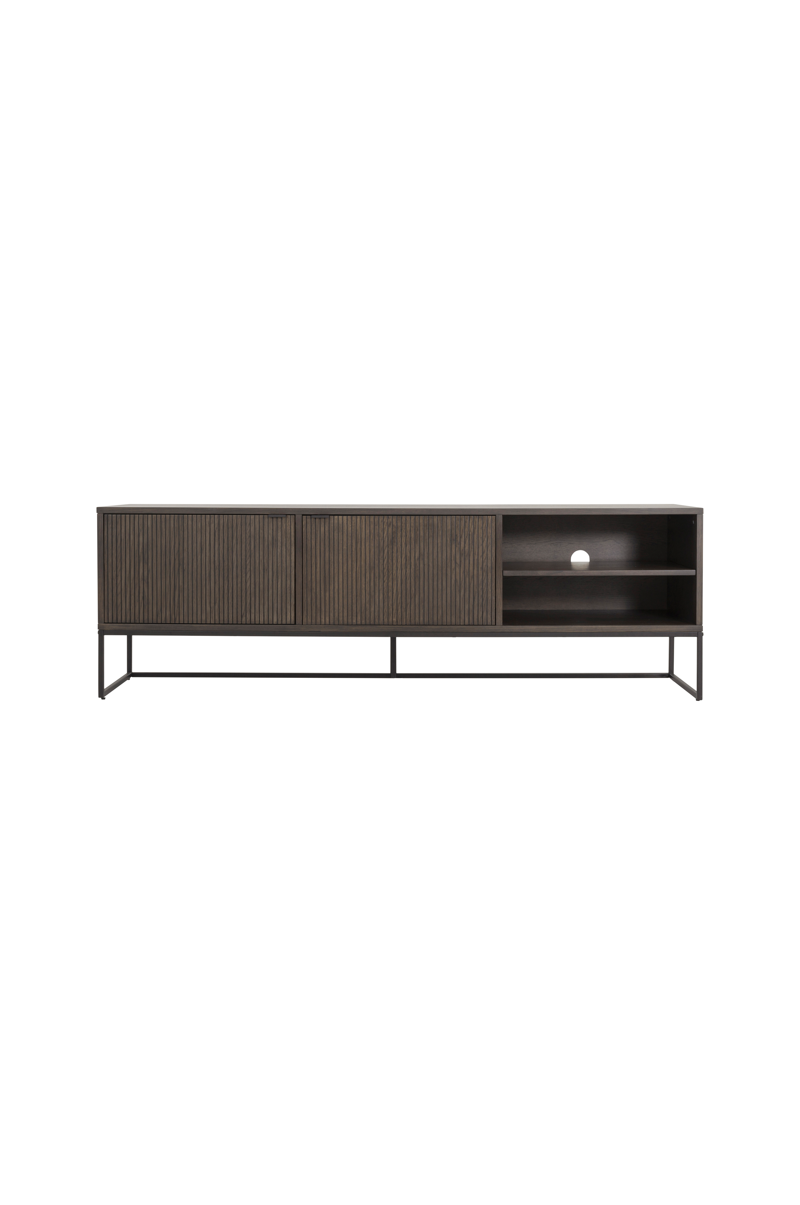 Tyylikäs TV-taso, joka sopii useimpiin olohuoneisiin. TV-tasossa on kaksi pehmeästi sulkeutuvaa ovea ja kaksi avolokeroa, joten se tarjoaa runsaasti säilytystilaa sekä televisiollesi että muille mediatarvikkeille. Siinä on johdonhallinta, mikä pitää johdot järjestyksessä ja poissa näkyvistä.