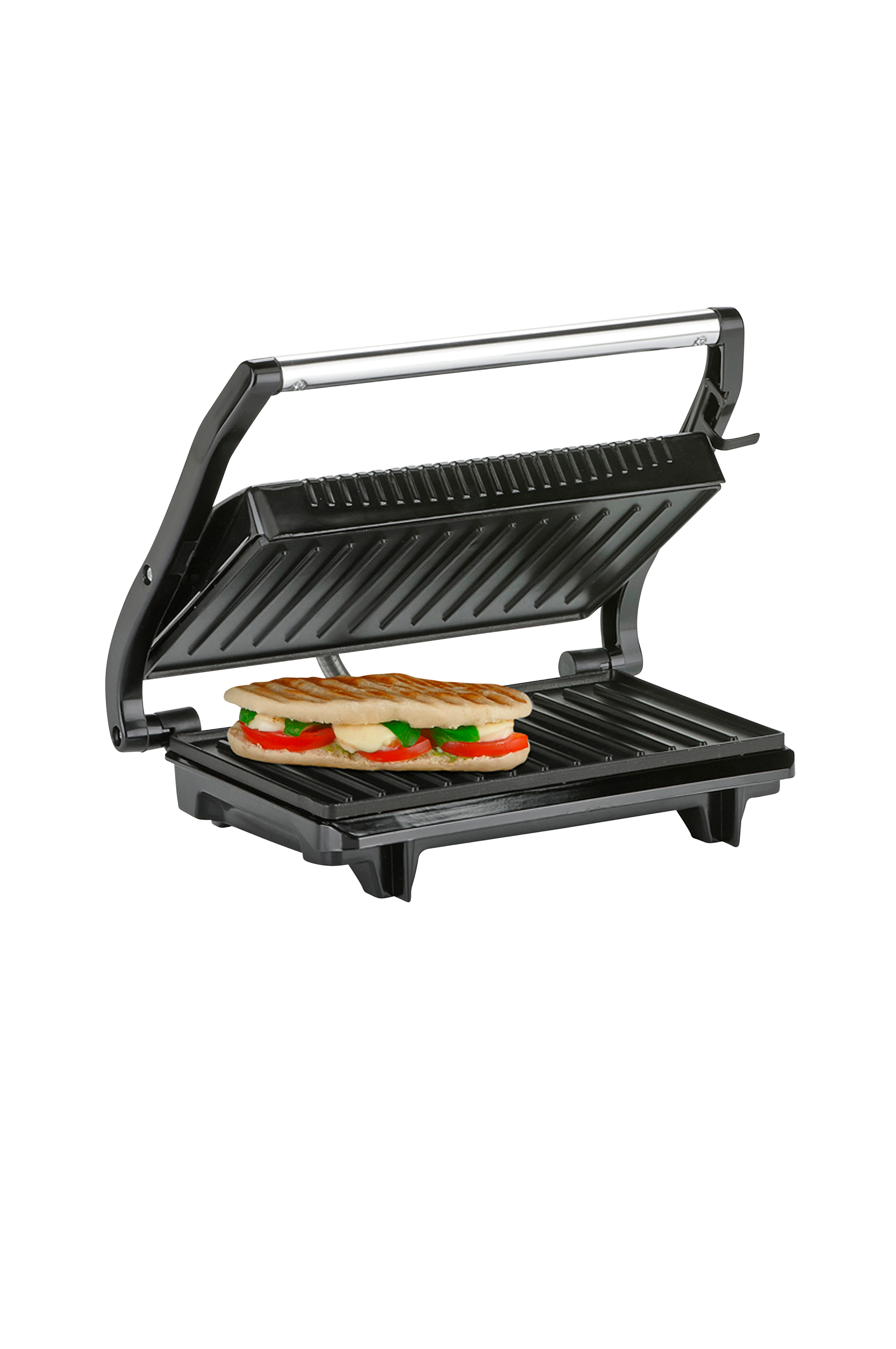 Kompakti kontaktigrilli, jossa tyylikäs kansi ruostumatonta terästä. Ihanteellinen esim. kalan, lihan ja lämpimien voileipien valmistamiseen. Paistolevyissä helposti puhdistettava tarttumaton pinnoite.