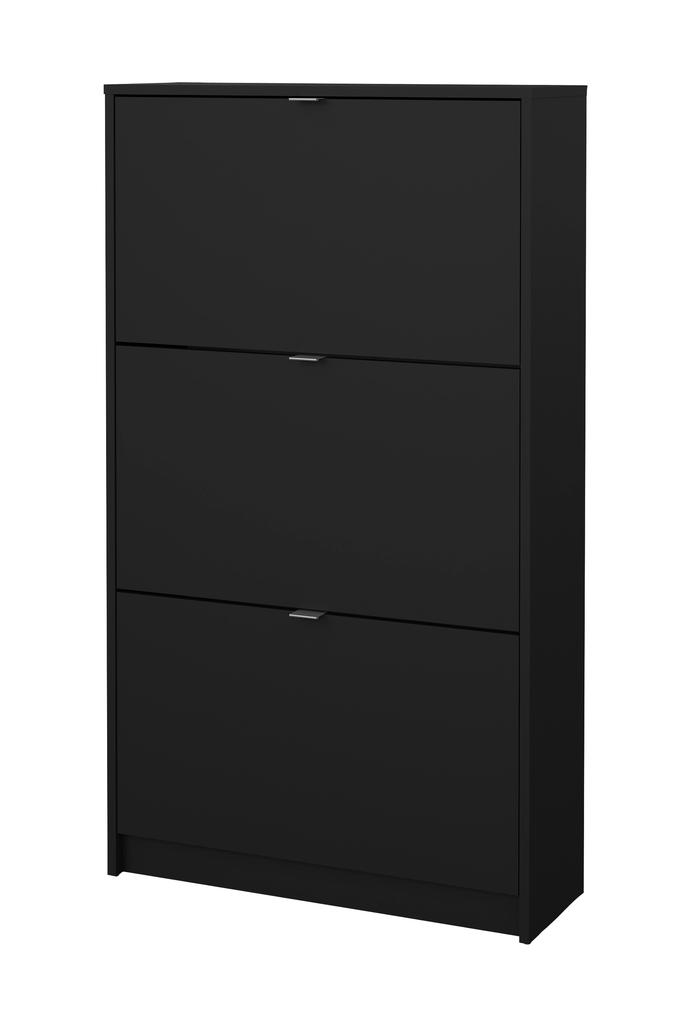 Shoes vastaa kaikkien tarpeisiin - kenkäpakkomielteisestä käytännölliseen minimalistiin. 3-ovinen kenkäkaappi tarjoaa ihanteellisen säilytystilan, sillä yksikköön mahtuu kolme tai kuusi kenkäparia syvyysvalinnasta riippuen. Kahdella kallistuvalla ovella varustetun tyylikkään profiilin ansiosta kenkäkaappi mahtuu siististi seinää vasten eteiseen, eteiseen, lokahuoneeseen tai makuuhuoneeseen, mikä säästää lattiatilaa ja pitää sen samalla siistinä ja järjestyksessä.