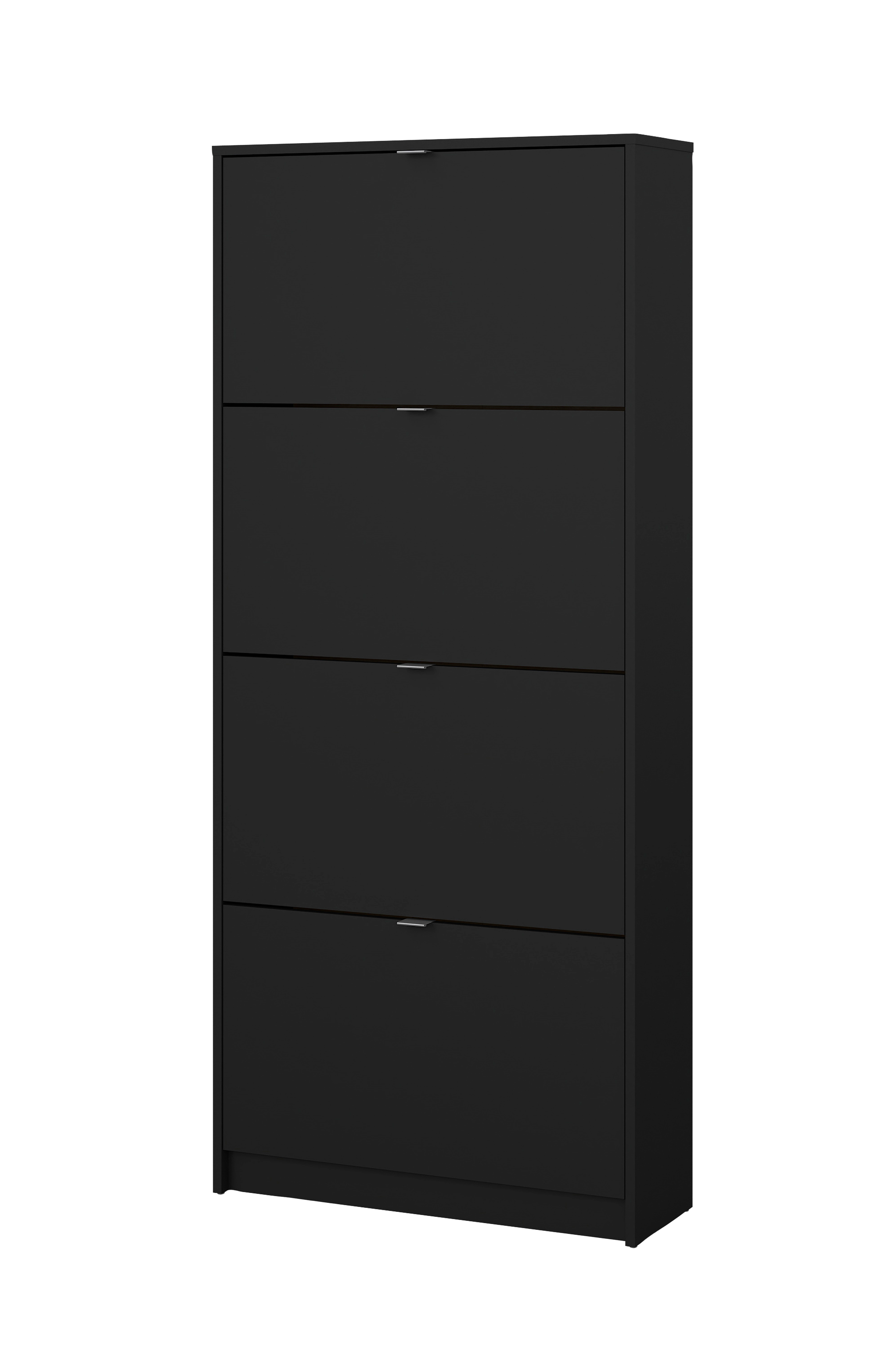 Shoes vastaa kaikkien tarpeisiin - kenkäpakkomielteisestä käytännölliseen minimalistiin. 4-ovinen kenkäkaappi tarjoaa ihanteellisen säilytystilan, sillä yksikköön mahtuu kolme tai kuusi kenkäparia syvyysvalinnasta riippuen. Kahdella kallistuvalla ovella varustetun tyylikkään profiilin ansiosta kenkäkaappi mahtuu siististi seinää vasten eteiseen, eteiseen, lokahuoneeseen tai makuuhuoneeseen, mikä säästää lattiatilaa ja pitää sen samalla siistinä ja järjestyksessä.