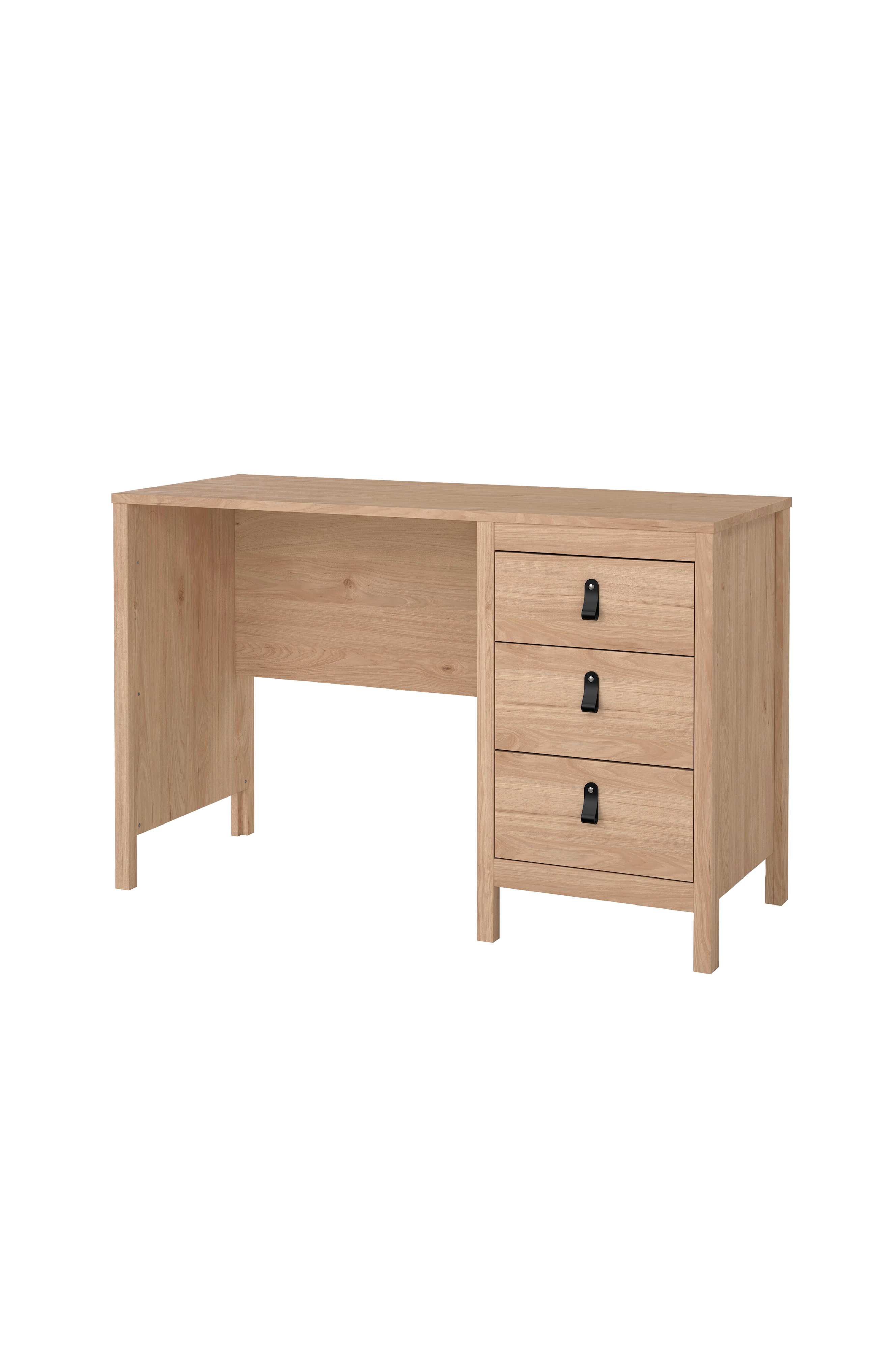 Madrid-pöytä sulautuu tyylikkään ja minimalistisen muotoilunsa ansiosta saumattomasti mihin tahansa kotiin. Siinä on kolme laatikkoa, jotka tarjoavat runsaasti säilytystilaa toimistotarvikkeille. Pidä työtilasi järjestyksessä ja nauti toimistopöydän yksinkertaisuudesta. Mukana on kaksi kahvaa, nahkainen ja nuppi, joilla voit säätää ulkoasua.