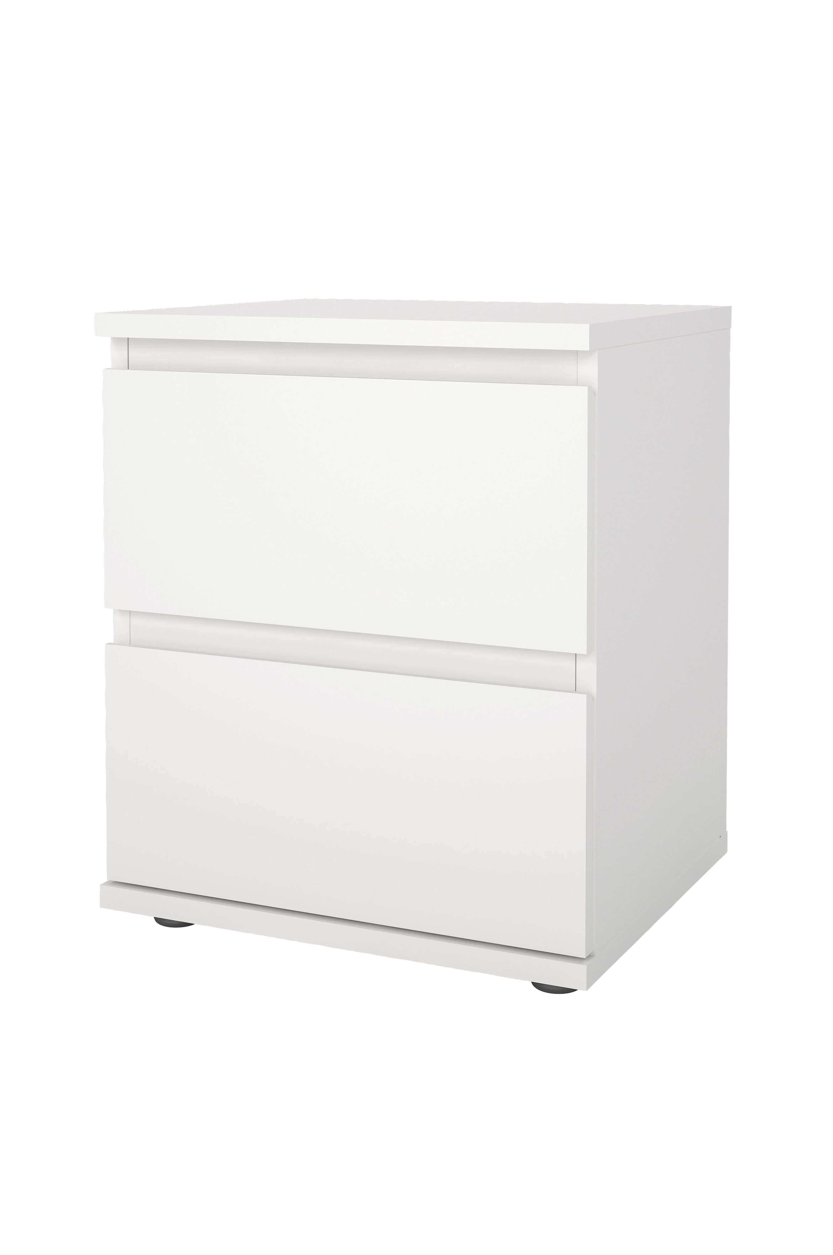 2-laatikkoinen yöpöytä sopii pienempiin tiloihin, ja sen mittakaava sopii kaikkiin kodin tiloihin. Minimalistinen, puhdaslinjainen siluetti luo ajattoman muotoilun, joka täydentää mitä tahansa sisustustyyliä. Kaksi kahvatonta laatikkoa tarjoavat runsaasti tilaa säästävää säilytystilaa, mikä luo hyvin pukeutuneen makuuhuoneen olennaisen osan. Haalistumaton, kääritty foliopinta luo pehmeät reunat puhtaaseen, lineaariseen muotoiluun ja on helppo puhdistaa.