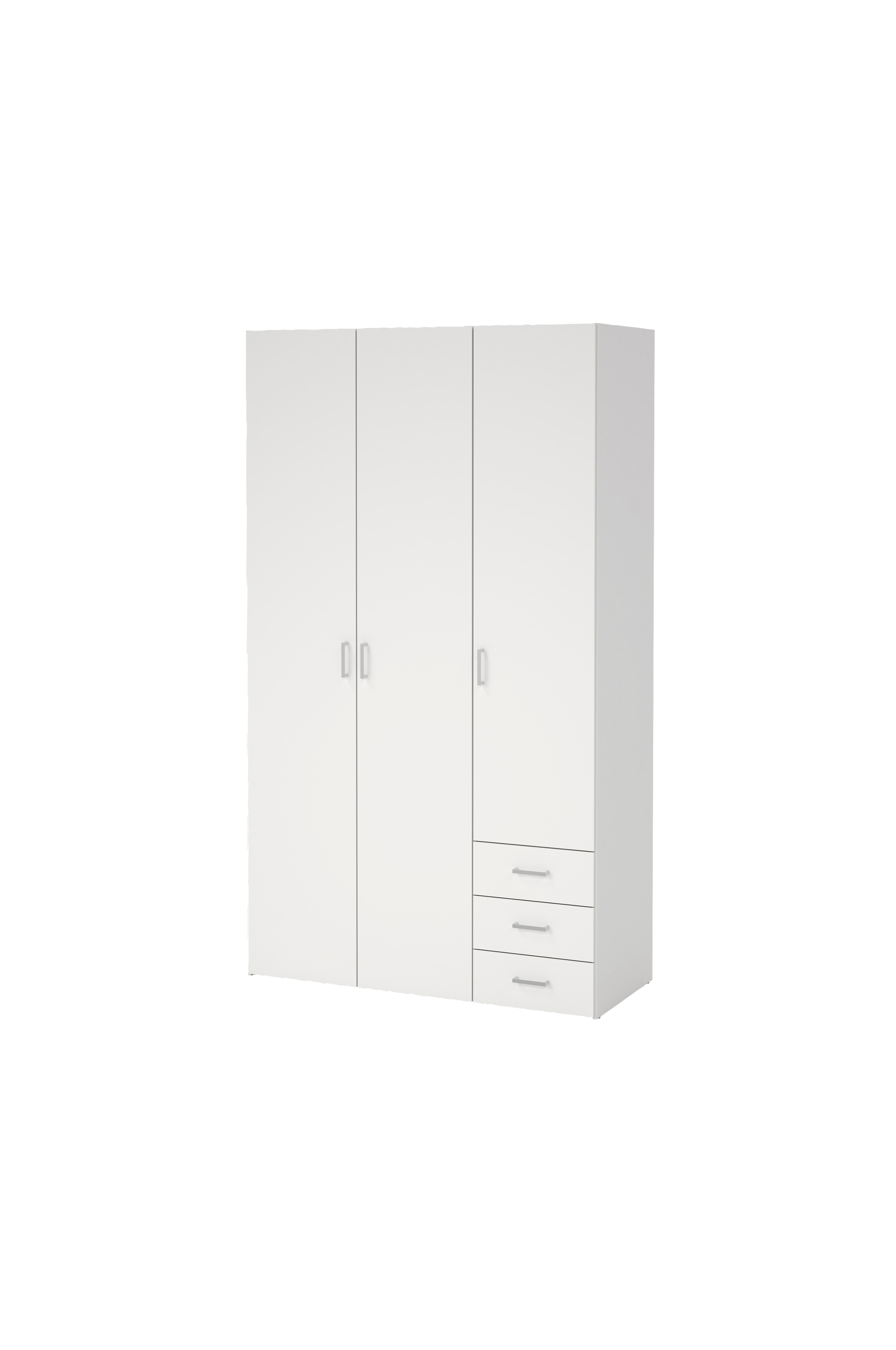 Tarvitsetko lisää tilaa? Kolmen oven ja kolmen laatikon vaatekaappi järjestää tavarasi helposti ja osoittaa jokaiselle tavaralle oman paikkansa. Vaatekaapissa on 3 säädettävää hyllyä ja 1 ripustustanko, joiden avulla makuuhuone tai eteinen pysyy helposti siistinä ja säilytystilat poissa näkyvistä. Vaatekaappi on valmistettu haalistumatonta foliota ja helppohoitoista, naarmuja ja tahroja kestävää pintakäsittelyä, mikä tekee siitä ihanteellisen sisustusvalinnan kotiisi.
