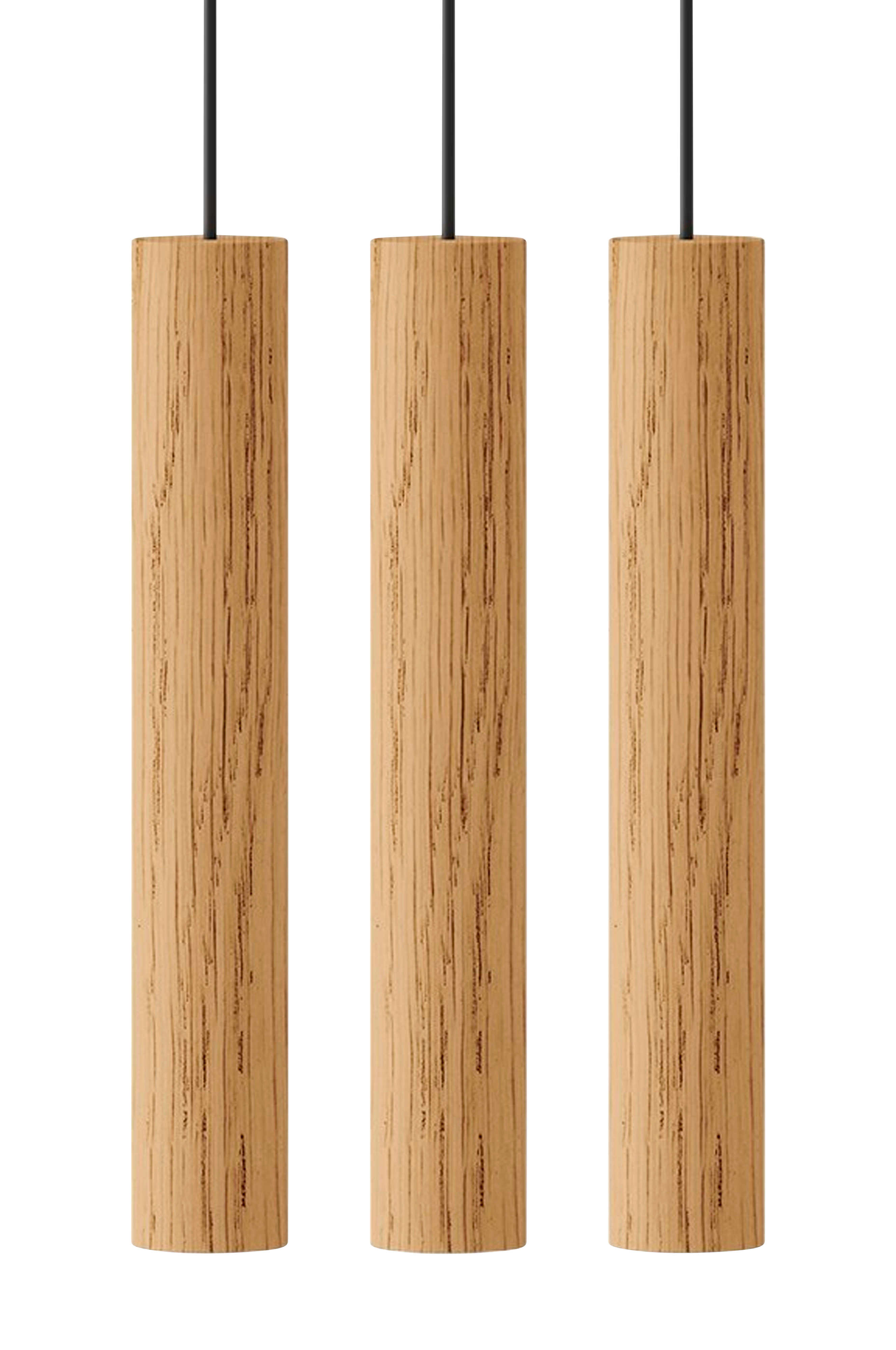 Kolme Chimes-valaisinta, jotka riippuvat mustasta kattokupista. Pelkistetty muotoilu ja näyttävä tammi yhdistettynä lämpimään LED-valoon tuo pohjoismaisen luonnon sisustukseesi. Suunnittelu on saanut inspiraatiota tiheän metsän muodostamista viehättävistä linjoista, kun kauniit puurivistöt kasvavat lähellä toisiaan. Valaisimet tarjoavat kohdennettua valoa juuri sinne, missä sitä tarvitset.