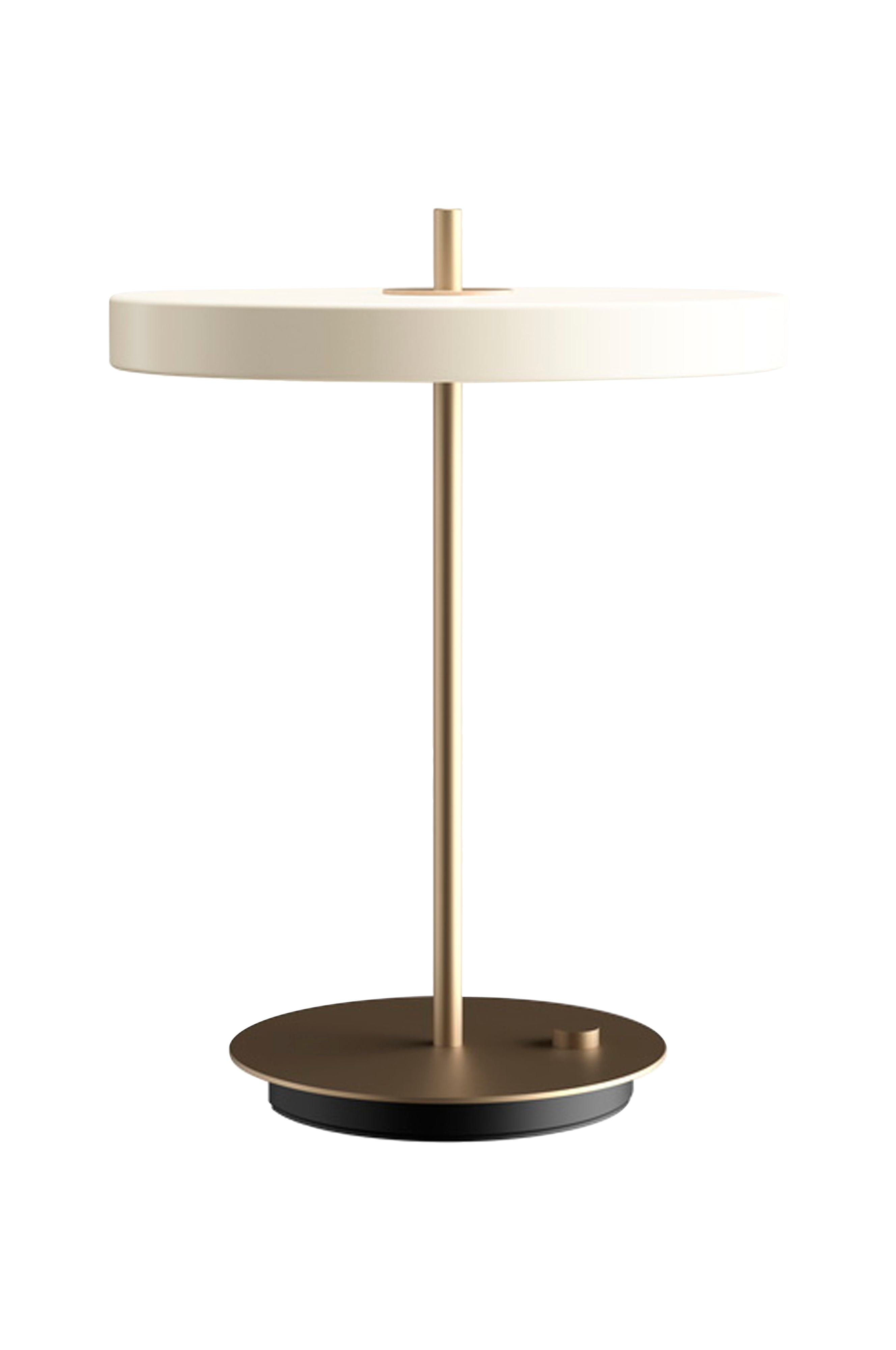 Asteria Table on tulevaisuuden pöytävalaisin! Sisäänrakennetun himmennettävän LED-paneelin ansiosta valoa voidaan säätää tehokkaasta työvalosta pehmeään tunnelmavalaistukseen. Valaisimen läpi kulkeva pelkistetty messinkitanko viimeistelee selkeälinjaisen muotoilun. Valaisimessa on upotettu USB-portti, josta voit ladata mobiililaitteen silloinkin, kun valo on sammutettuna. Pöytävalaisin on omiaan kirjoituspöydälle, sohvan viereen tai yöpöydälle. Asteria Table tuo hienostunutta ilmettä kodin joka nurkkaukseen. Valaisimella on 10 vuoden takuu.
