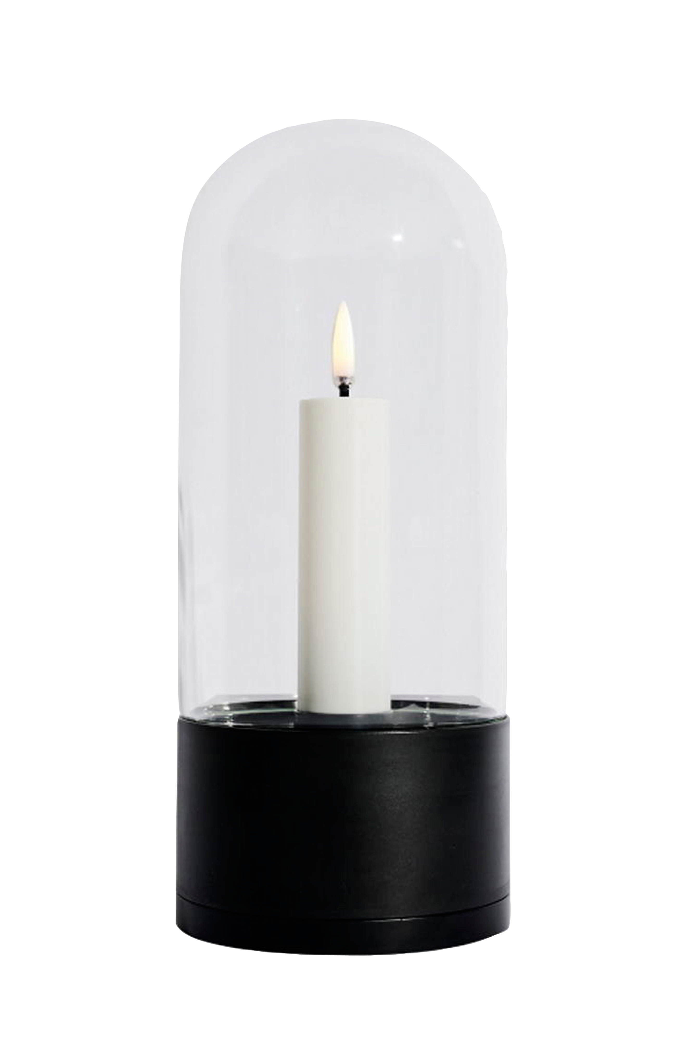 UYUNI Outdoor -lyhty, jossa himmennettävä LED-kynttilä pehmeästi liekehtivällä liekillä. Kynttilässä on sisäänrakennettu ajastin, ja sitä voidaan ohjata kaukosäätimellä. (Tilaa kaukosäädin erikseen). Aseta lyhty pöydälle tai osta myös teline ja maapiikki käyttömahdollisuuksien laajentamiseksi.