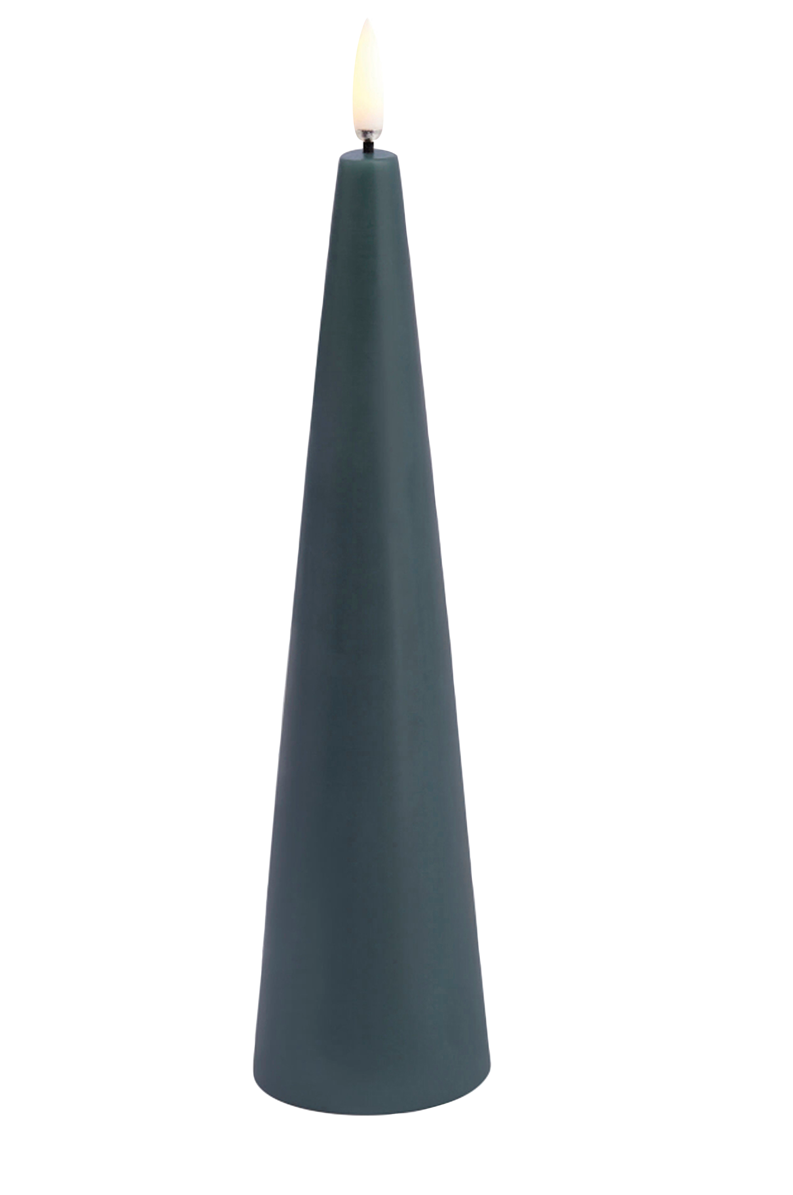 Uyunin kartion muotoinen vihreä LED-kynttilä, jonka patentoitu 3D-liekki luo erittäin realistisen vaikutelman lepattavasta, lämpimästä kynttilän liekistä.