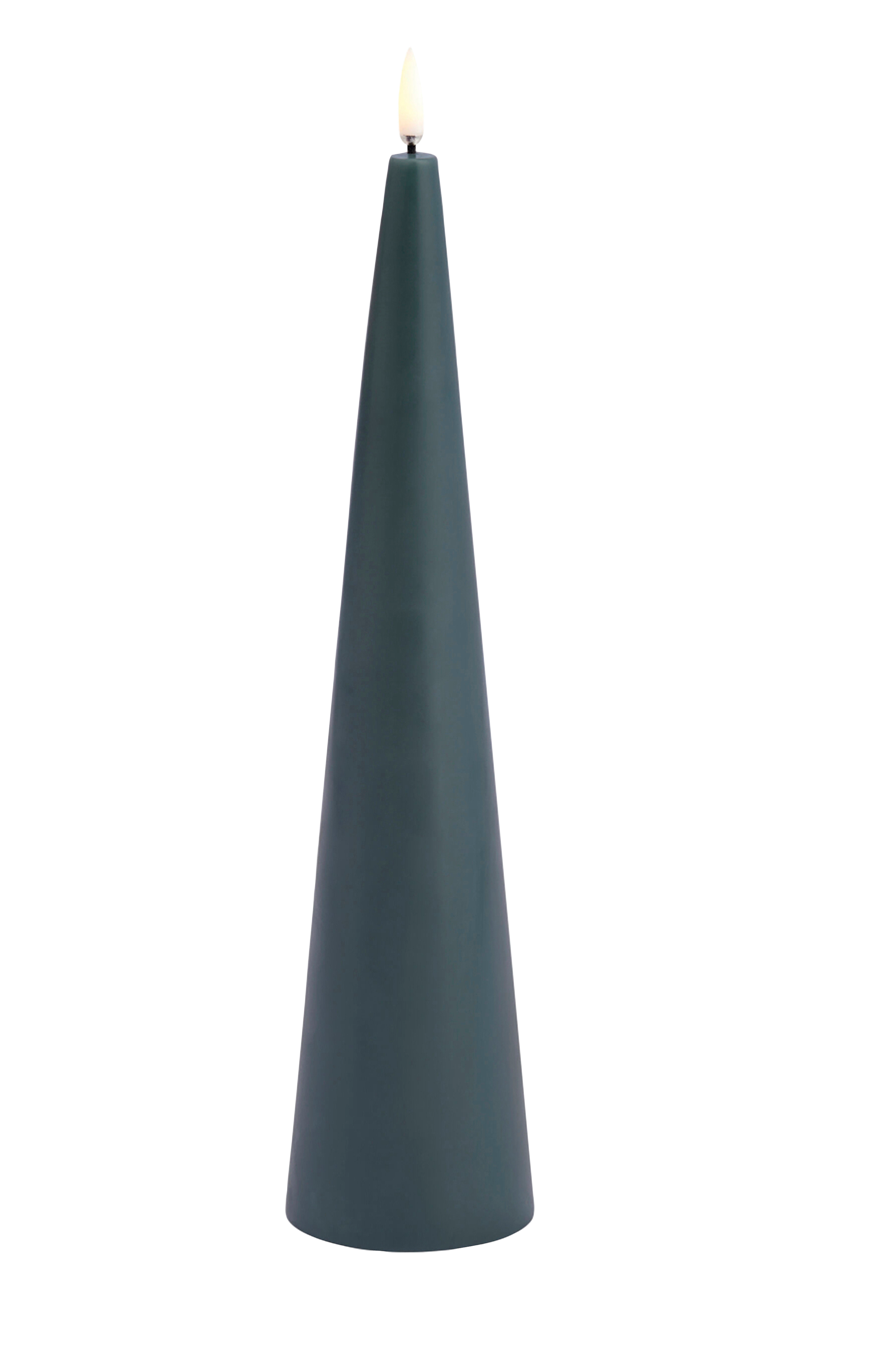 Uyunin kartion muotoinen vihreä LED-kynttilä, jonka patentoitu 3D-liekki luo erittäin realistisen vaikutelman lepattavasta, lämpimästä kynttilän liekistä.