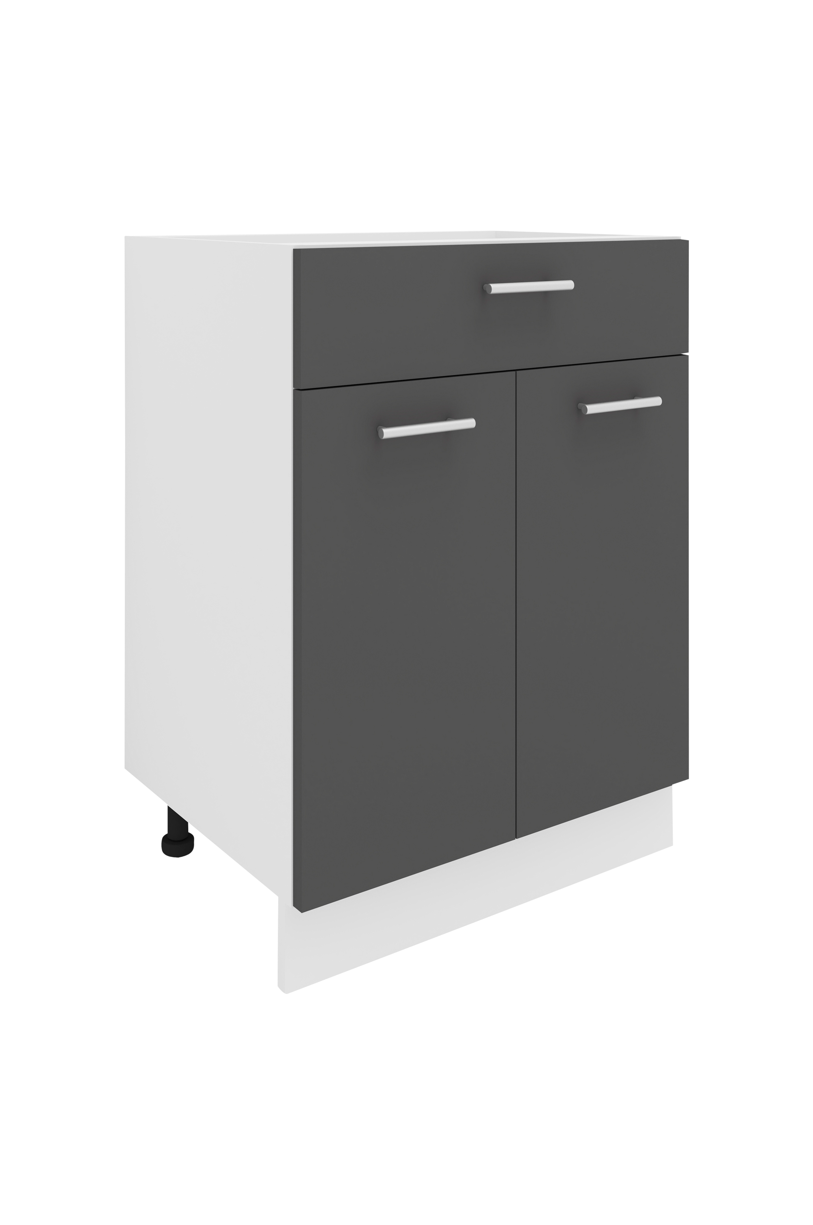 vcm-keittiökaappi, jossa on kaksi saranoitua doors ja yksi drawer, on erityisen nykyaikainen ja tarjoaa runsaasti säilytystilaa keittiövälineille. Runko on 16 mm paksu ja siksi erityisen vakaa.