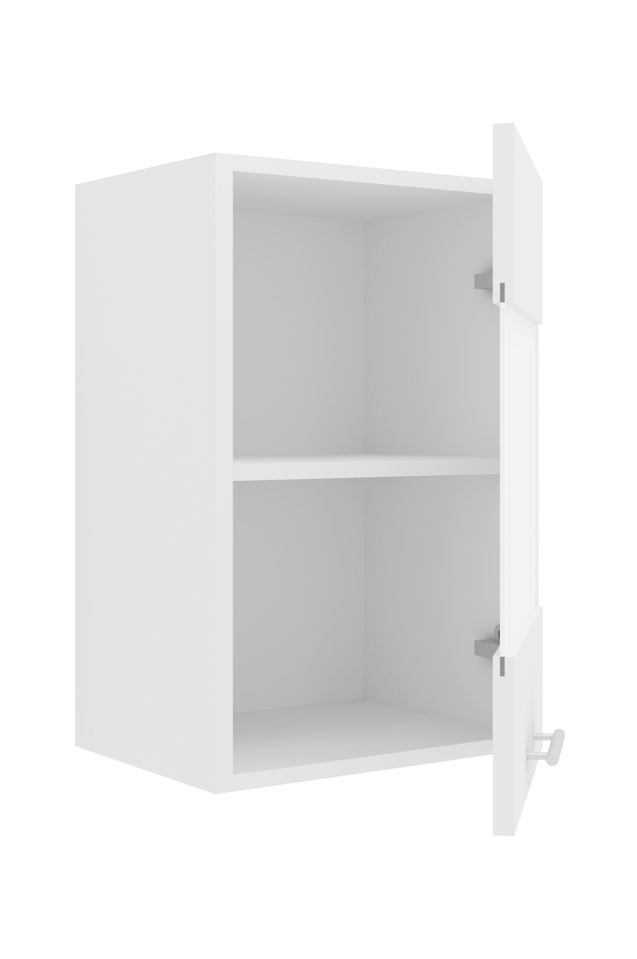 vcm-seinäkaappi, jossa on yksi hylly ja himmeästä glass valmistettu saranoitu door on erityisen nykyaikainen ja tarjoaa runsaasti tilaa keittiövälineille. Runko on 16 mm paksu ja siksi erityisen vakaa.