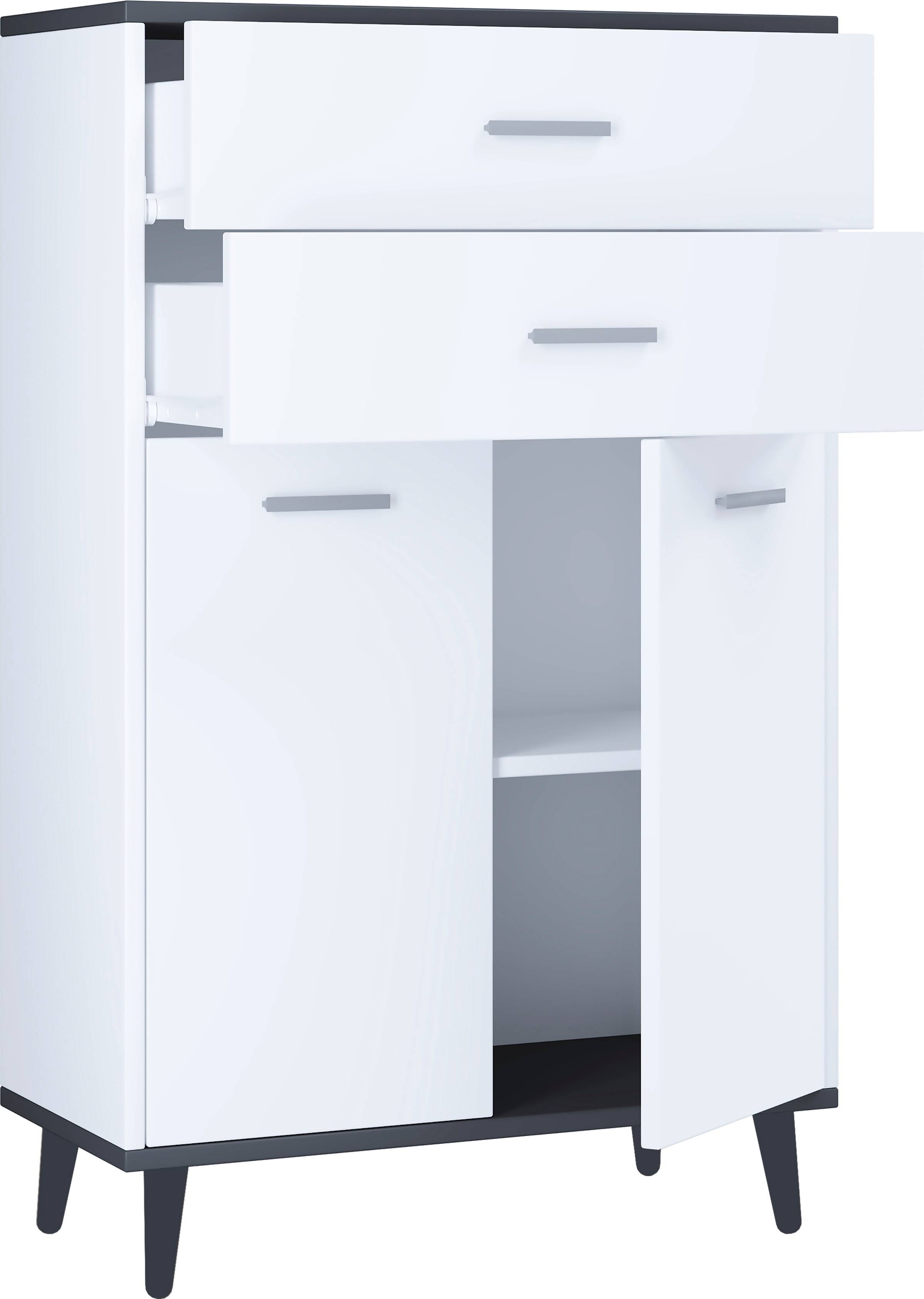 kaksi laatikkoa ja kaksi suurta lokeroa, joissa on käytännöllinen hyllyjako, tarjoavat runsaasti säilytystilaa. Highboard voidaan yhdistää muihin "vcm lindas " -sarjan kalusteisiin.