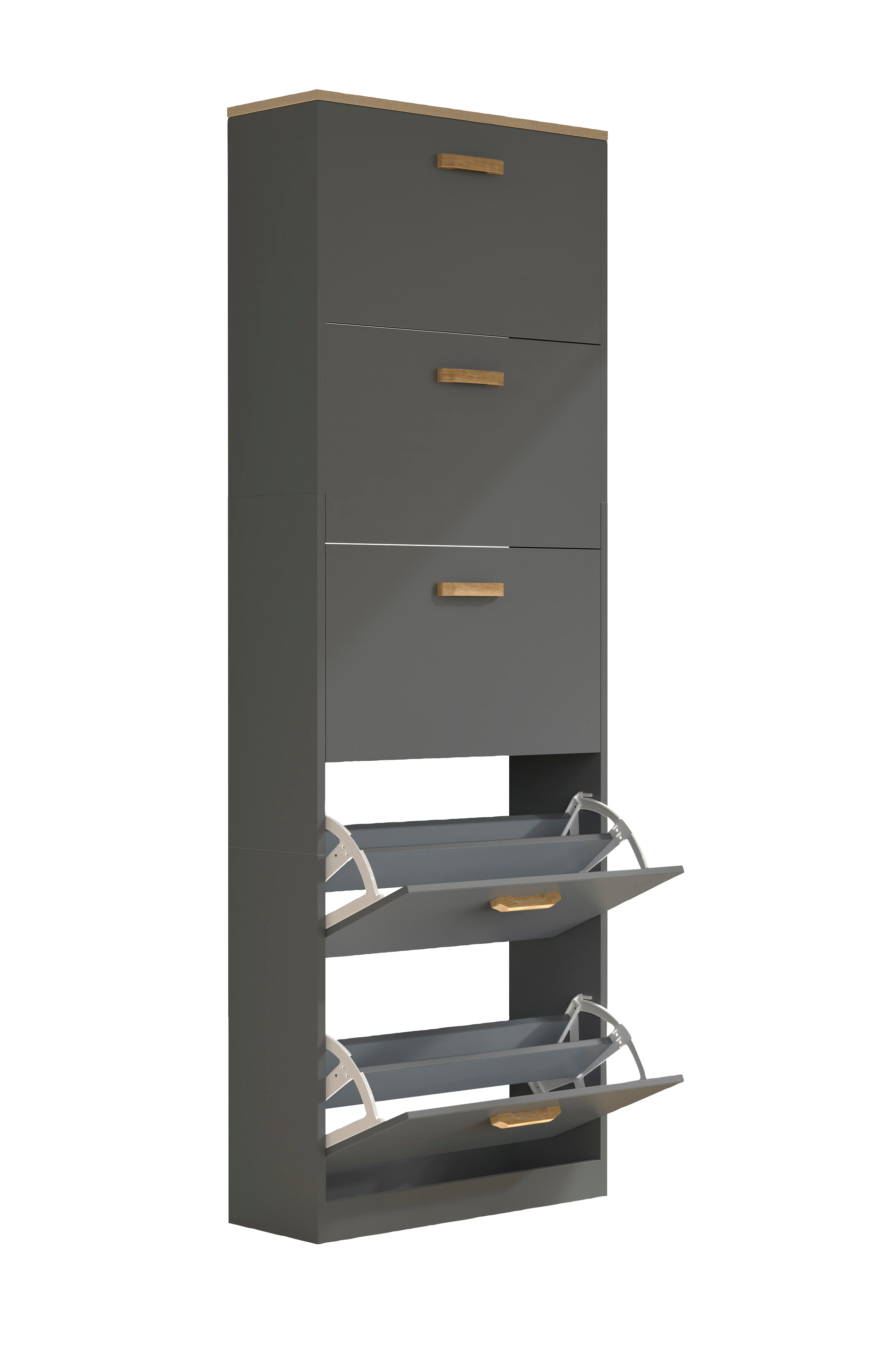 "halom" kenkäkaappi on pienen tilan ihme, jossa on runsaasti säilytystilaa. Kukin viidestä lokerosta on jaettu niin, että kengät voidaan säilyttää siististi ja tilaa säästävästi.