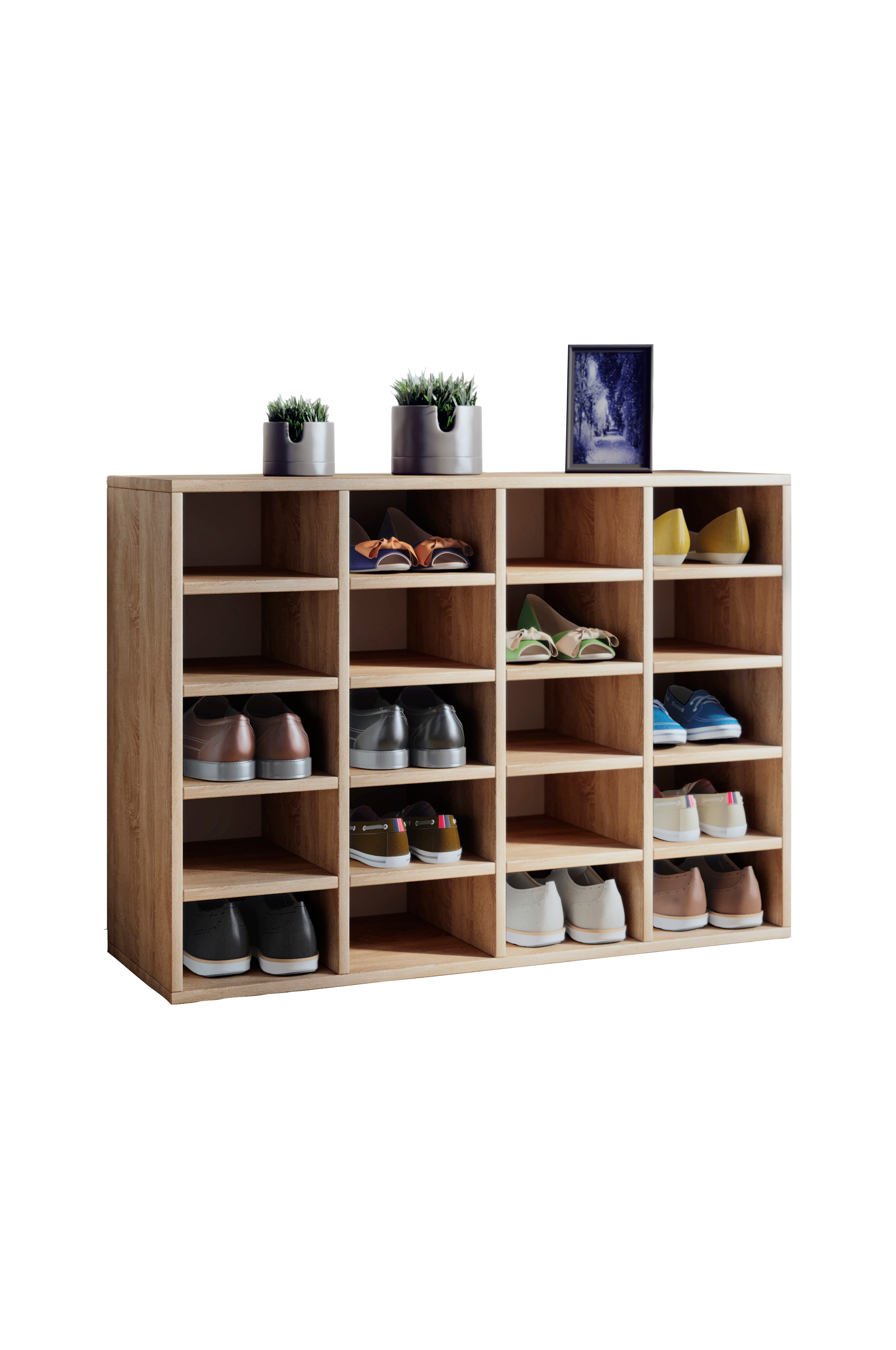 - 20 tilavaa hyllyä 20 kenkäparille