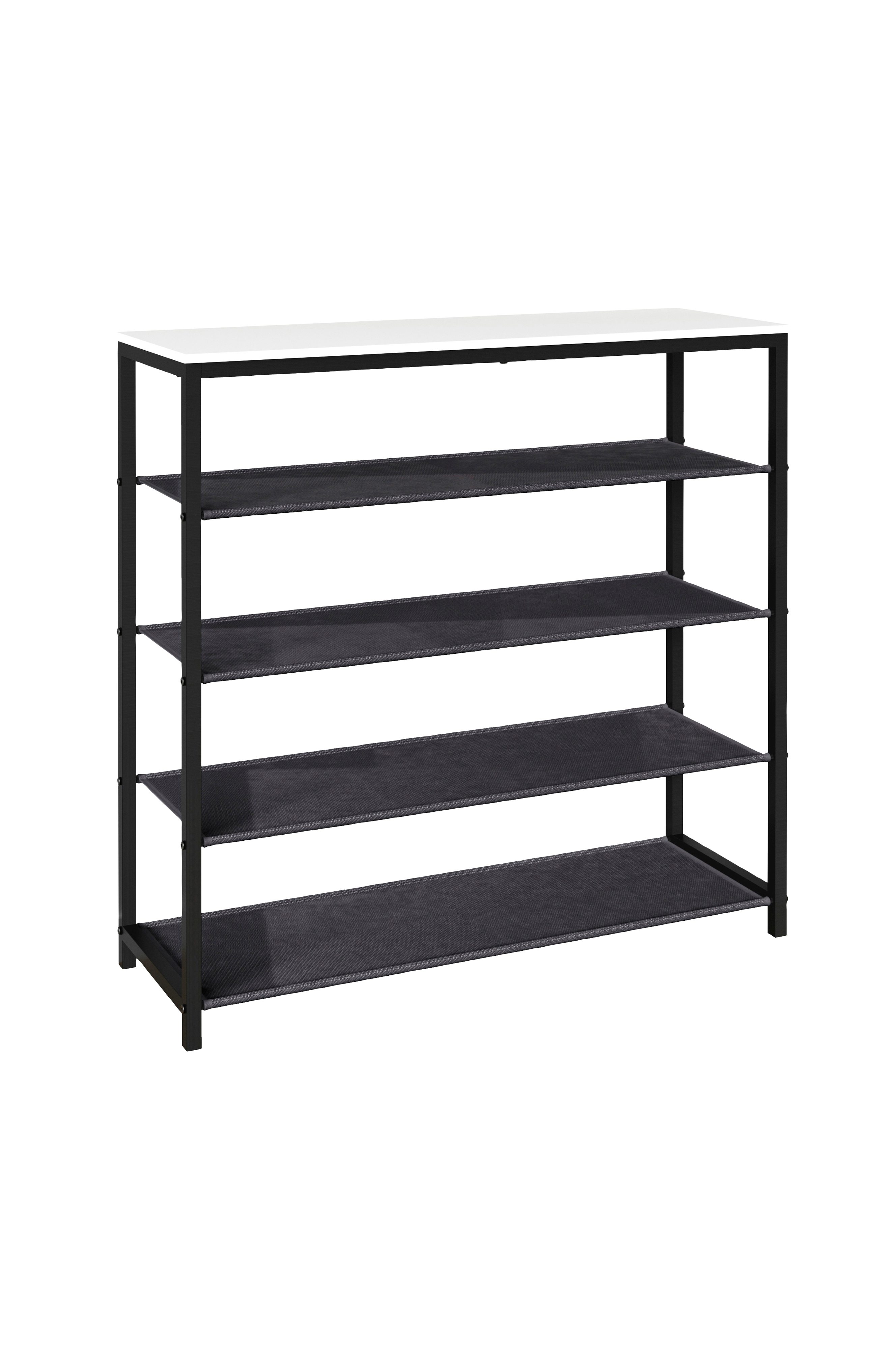 Neljään lokeroon mahtuu kaksitoista kenkäparia, ja ylähylly tarjoaa käytännöllisen säilytyspinnan.