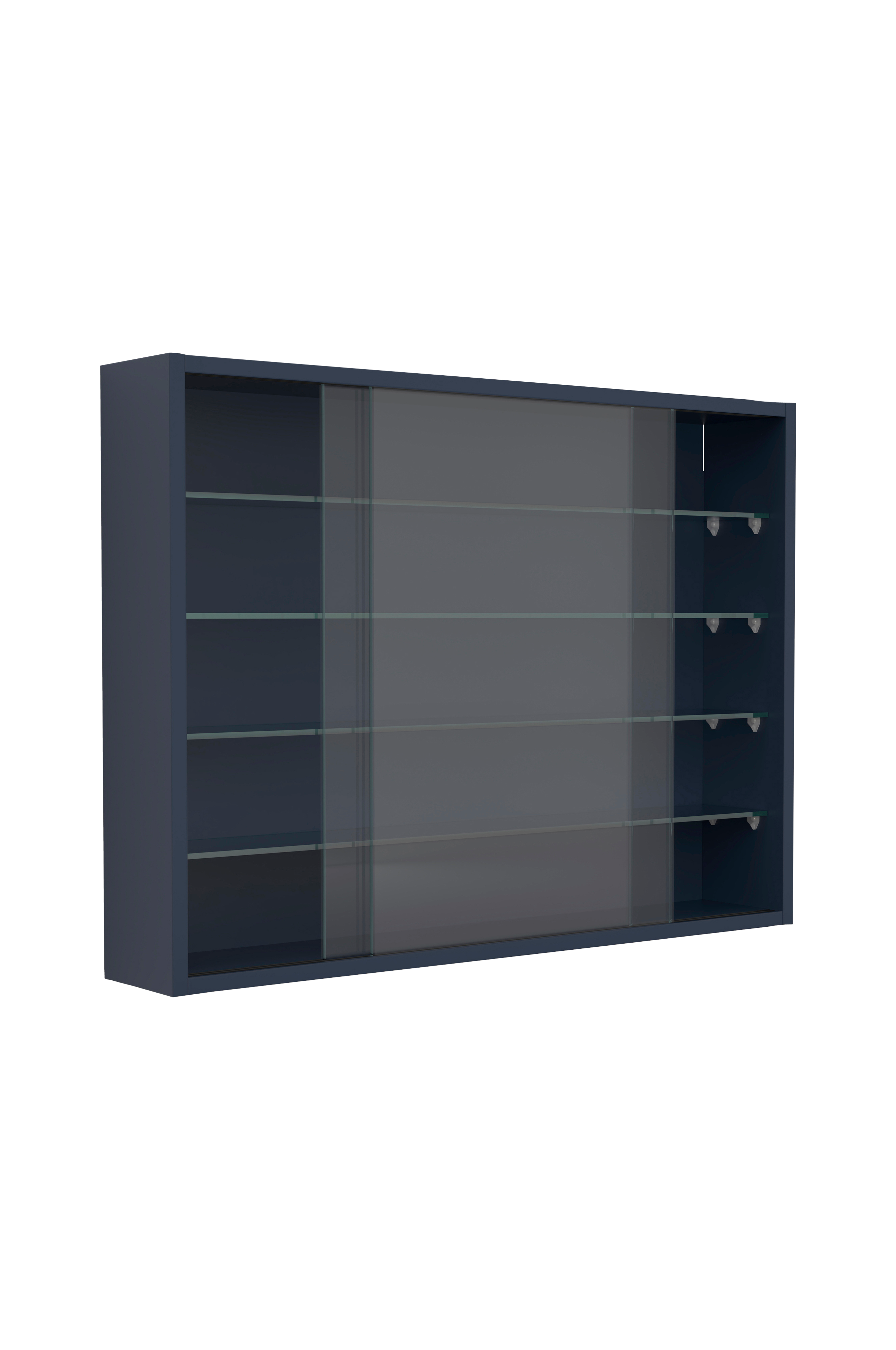 Neljä lasihyllyä luo viisi lokeroa, jotka tarjoavat runsaasti selkeää säilytystilaa. Kaksi lasista liukuovea pitävät pölyn poissa sisätiloista, jotta koristeet ja esineet pääsevät kauniisti esille.