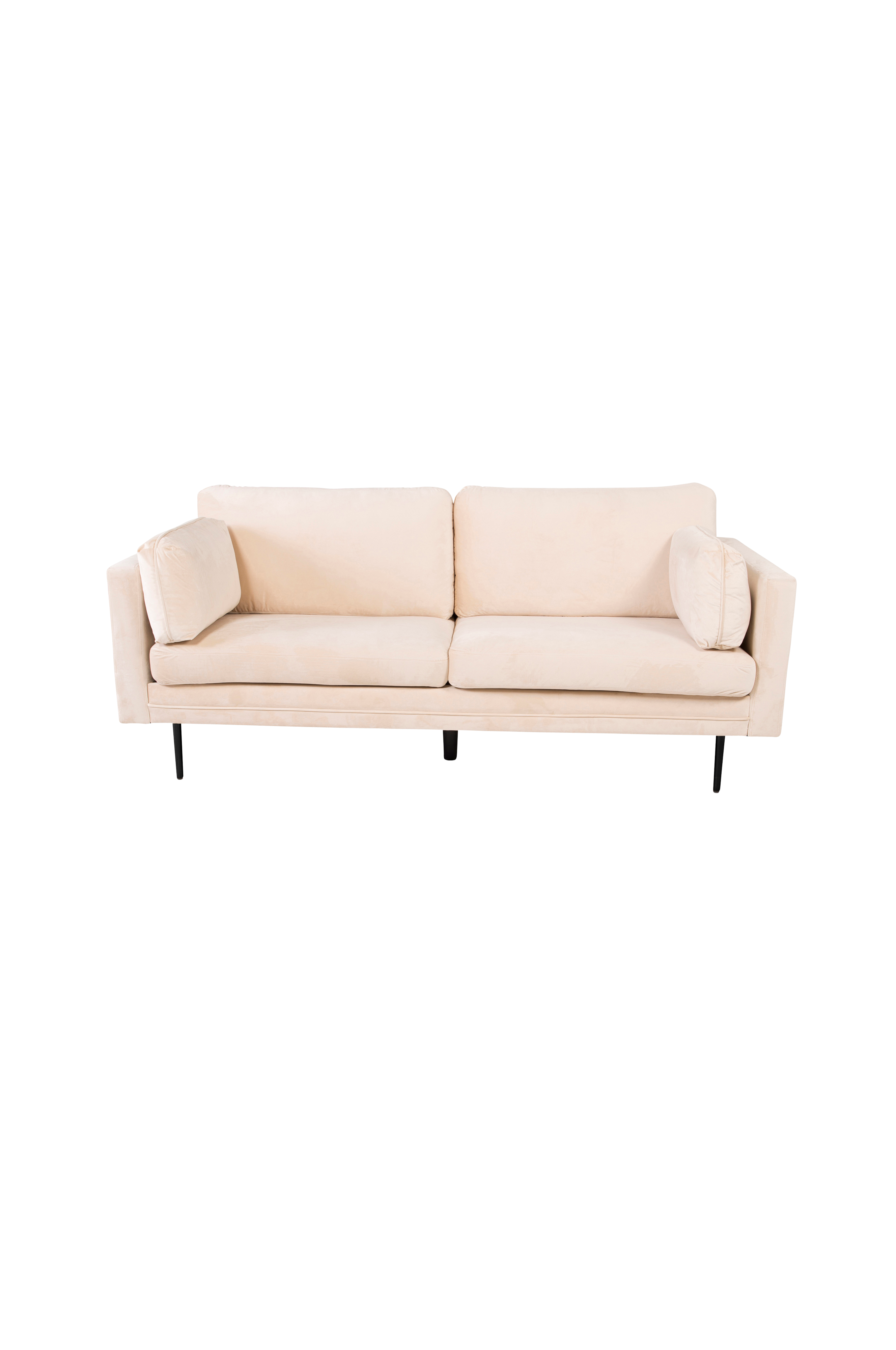 3:n istuttava Boel-sohva, jossa samettiverhoilu. Metallijalat. Jalkojen mitat: Korkeus: 20,5 cm. Sohva toimitetaan jalat irrallaan.