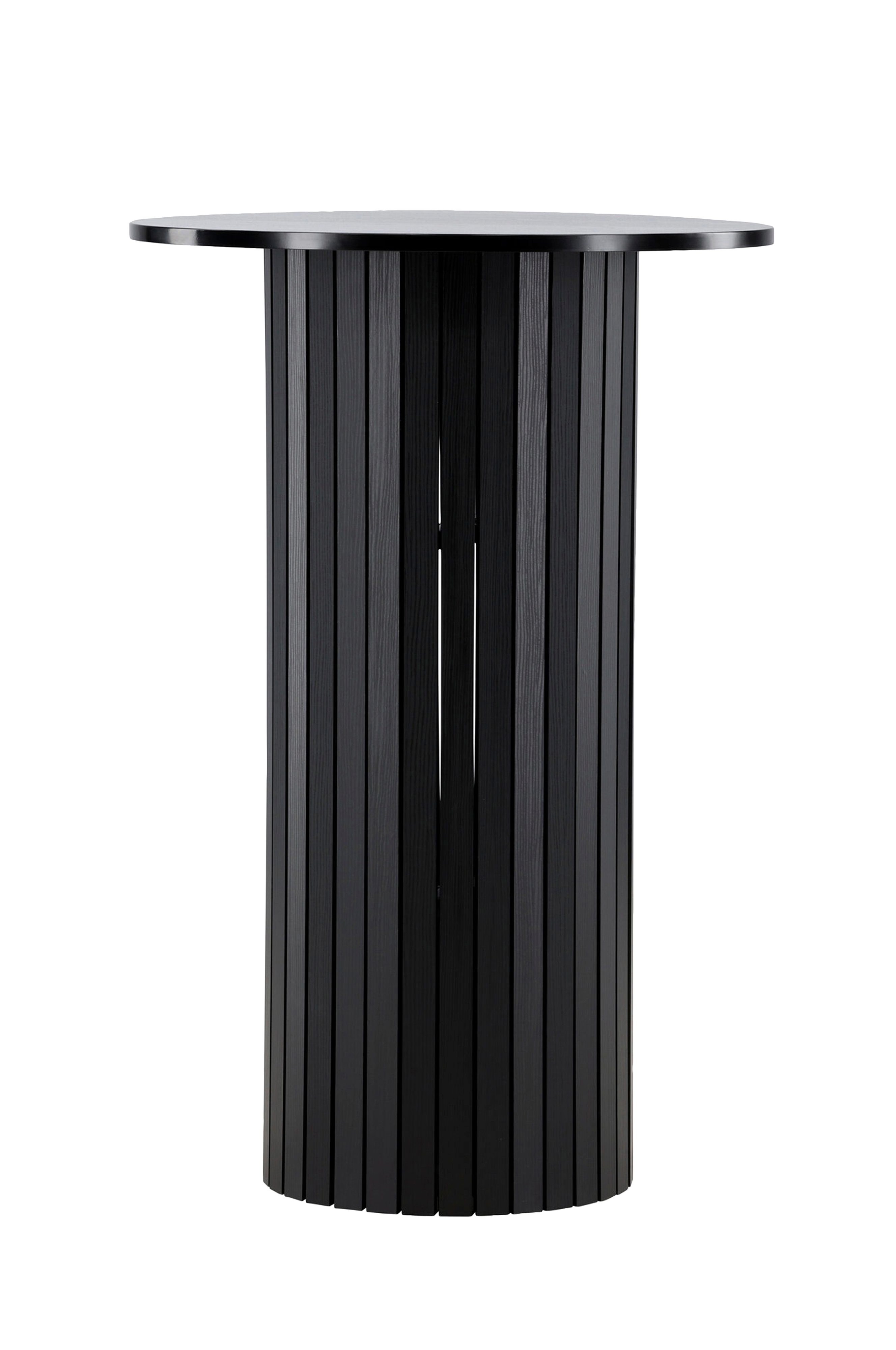 Musta mdf-pöytälevy ja mustasta teräksestä valmistettu runko tekevät härön baaripöydästä hienostuneen ja modernin. Sen kompakti koko, jonka halkaisija on 70 cm ja korkeus 105 cm, tekee siitä täydellisen sopivan ahtaisiin tiloihin ja antaa vaikuttavan läsnäolon huoneessa.
