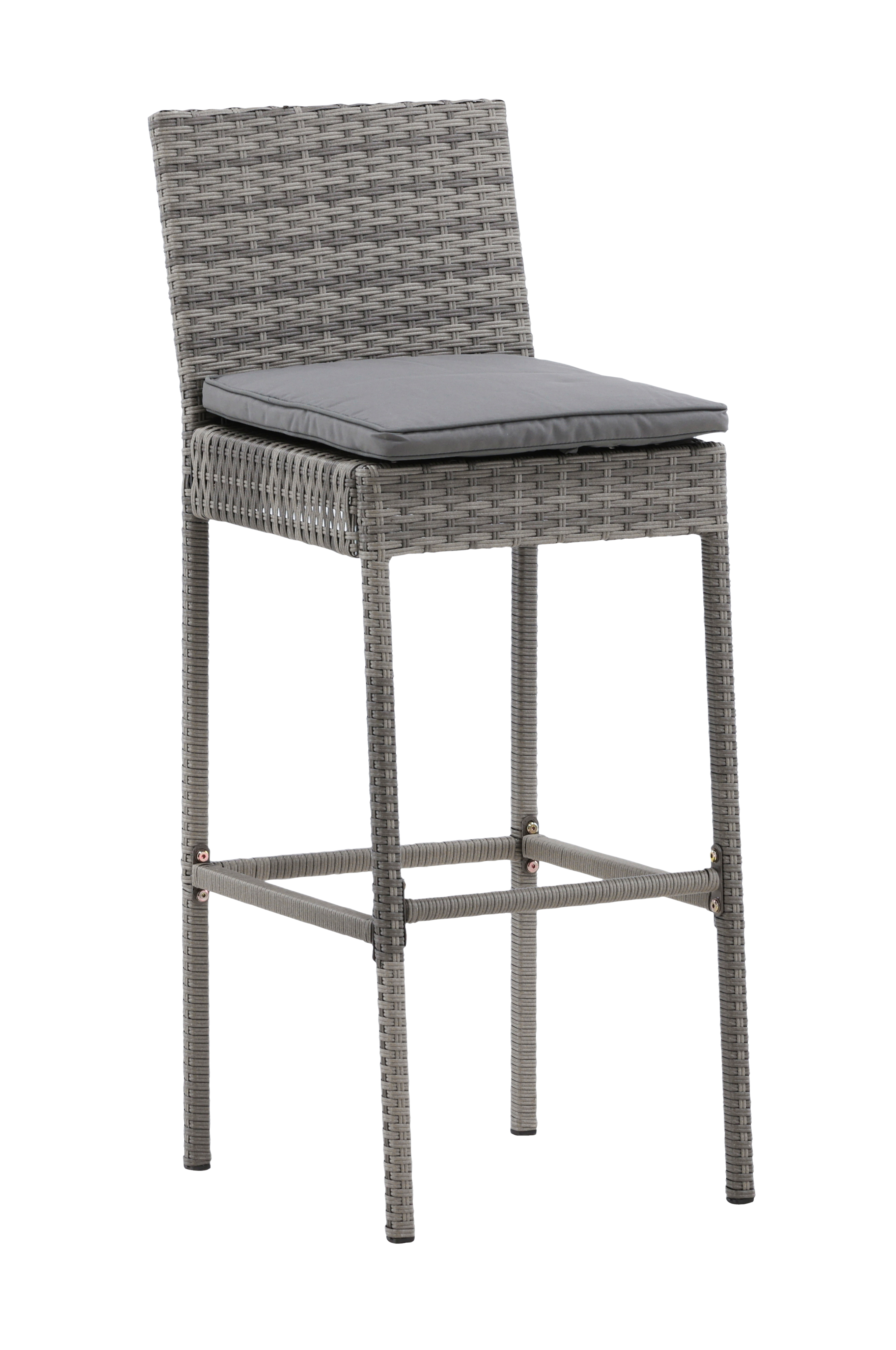 Alo-sarjan baarituolilla ei tarvitse tinkiä muotoilusta tai mukavuudesta! Kauniin harmaan värinen baarituoli on valmistettu kokonaan alumiinista ja polyrottingista, jotka kestävät pitkään. Tuolissa on myös erittäin mukava selkänoja sekä integroitu jalkatuki. Kalusta ulkotila kutsuvalla ruokailuryhmällä, joka kohottaa terassin ilmeen! Mitat: korkeus: 108 cm, leveys: 40 cm, syvyys: 44 cm