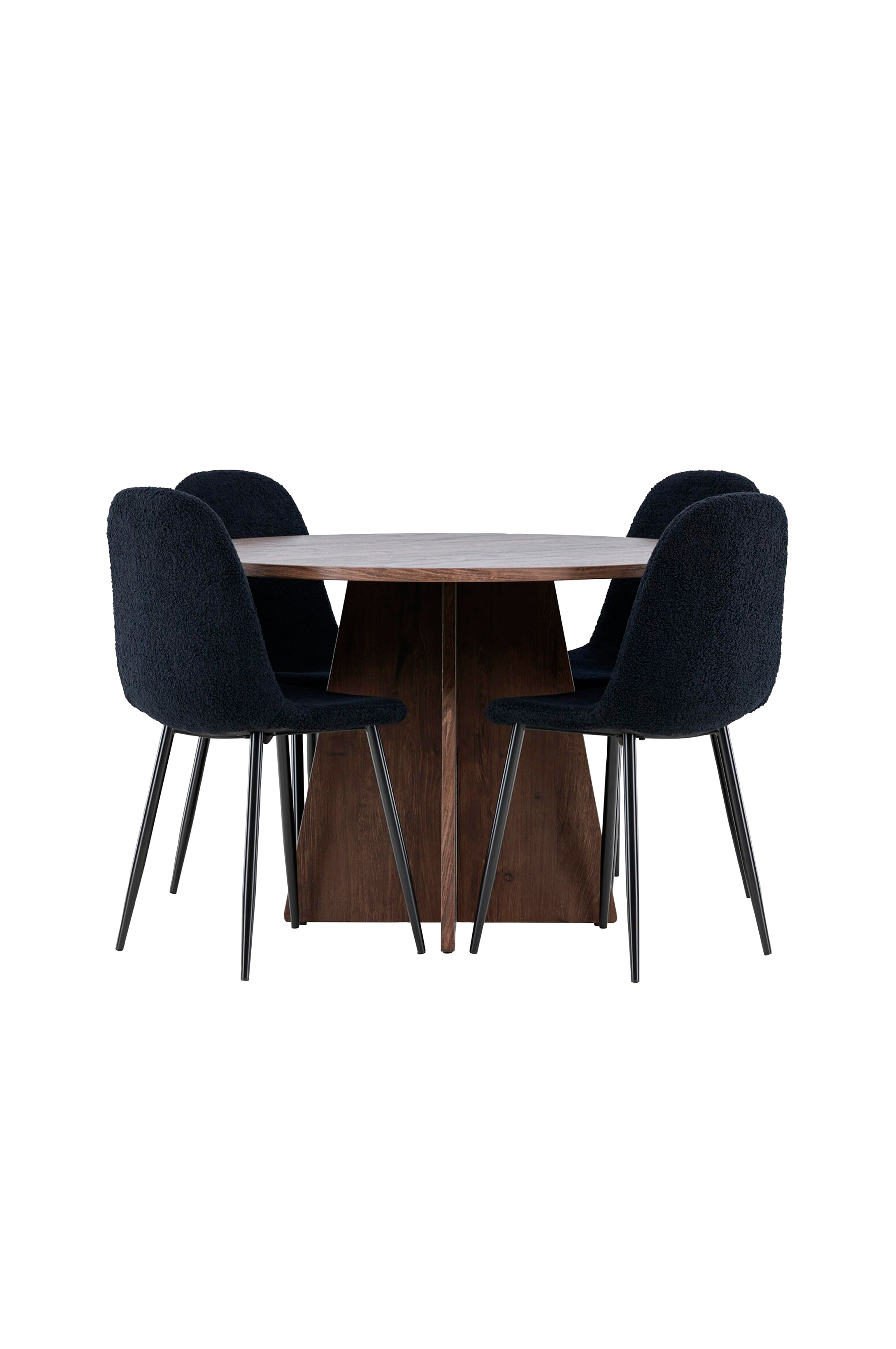 Muunna ruokailutilasi tyylikkäällä ruokailusarjalla, jossa yhdistyvät tyylikäs bootcut-pöytä ja modernit polar-tuolit. Tämä ruokailusetti sopii erinomaisesti sekä jokapäiväisiin aterioihin että juhlallisiin tilaisuuksiin ja antaa ruokasalillesi hienostuneen ja kutsuvan tunnelman. Bootcut-pöytä on valmistettu mdf-levystä, ja sen halkaisija on 110 cm, joten siinä on runsaasti tilaa ruoalle ja keskustelulle, ja sen pyöreä muoto luo ruokasaliin harmonisen ilmapiirin. Tukeva rakenne takaa pitkäaikaisen käytön ja vakauden. Polar-tuolit on verhoiltu pehmeällä ja miellyttävällä polyesteriteddyllä, joka tarjoaa sekä mukavuutta että ripauksen modernia ylellisyyttä. Nämä tuolit on suunniteltu sekä esteettisesti miellyttäviksi että toimiviksi, joten ne sopivat erinomaisesti pitkiin, rentouttaviin illallisiin perheen ja ystävien kanssa. Tämä ruokailusetti on täydellinen yhdistelmä eleganssia ja toiminnallisuutta, joten se on erinomainen valinta niille, jotka haluavat tyylikkään ja mukavan ruokailutilan. Luo paikka, jossa tehdään muistoja ja jaetaan hetkiä, bootcut-pöydän ja polar-tuolien kauniilla yhdistelmällä.