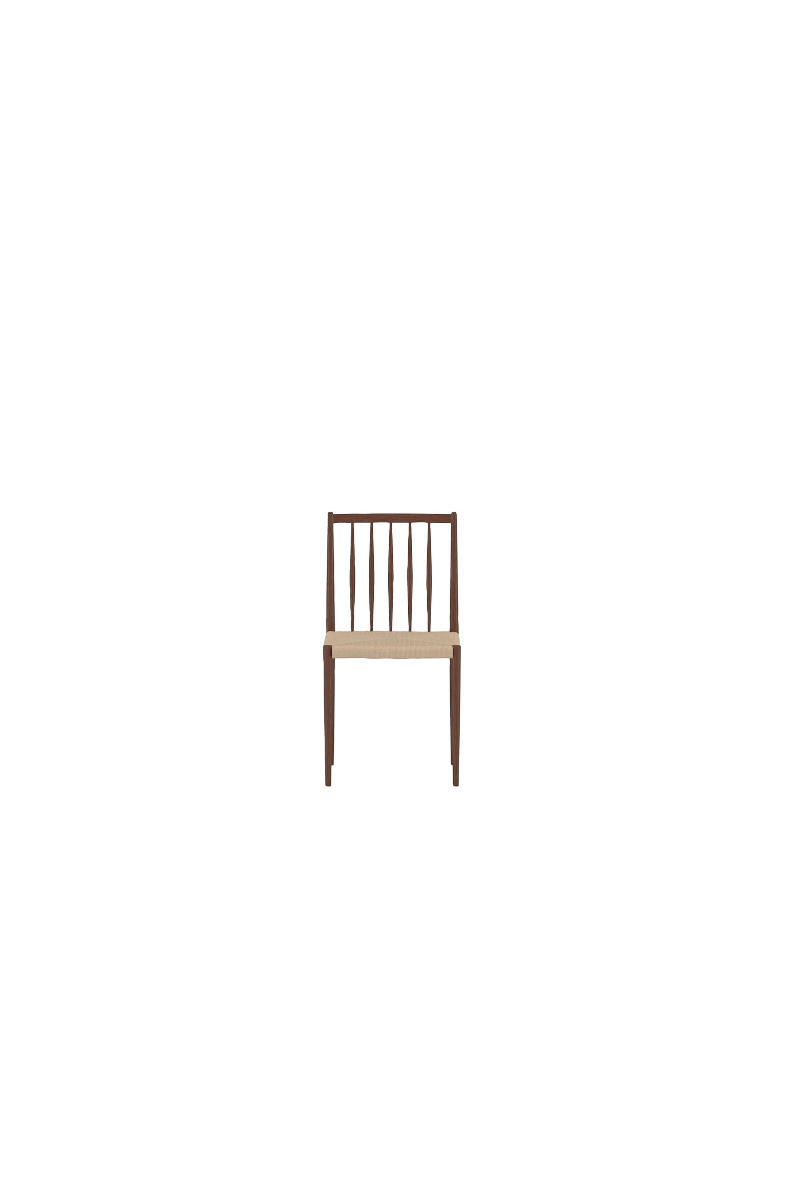 Enes on ajaton ruokapöytätuoli, jossa yhdistyvät lämmin puun sävy ja istuinosa, jossa on kudottua beigeä köyttä. Tyylikäs selkänoja, jossa on ohuet karat, antaa tuolille kevyen ja ilmavan ilmeen, joka sopii sekä moderniin että perinteiseen sisustukseen.