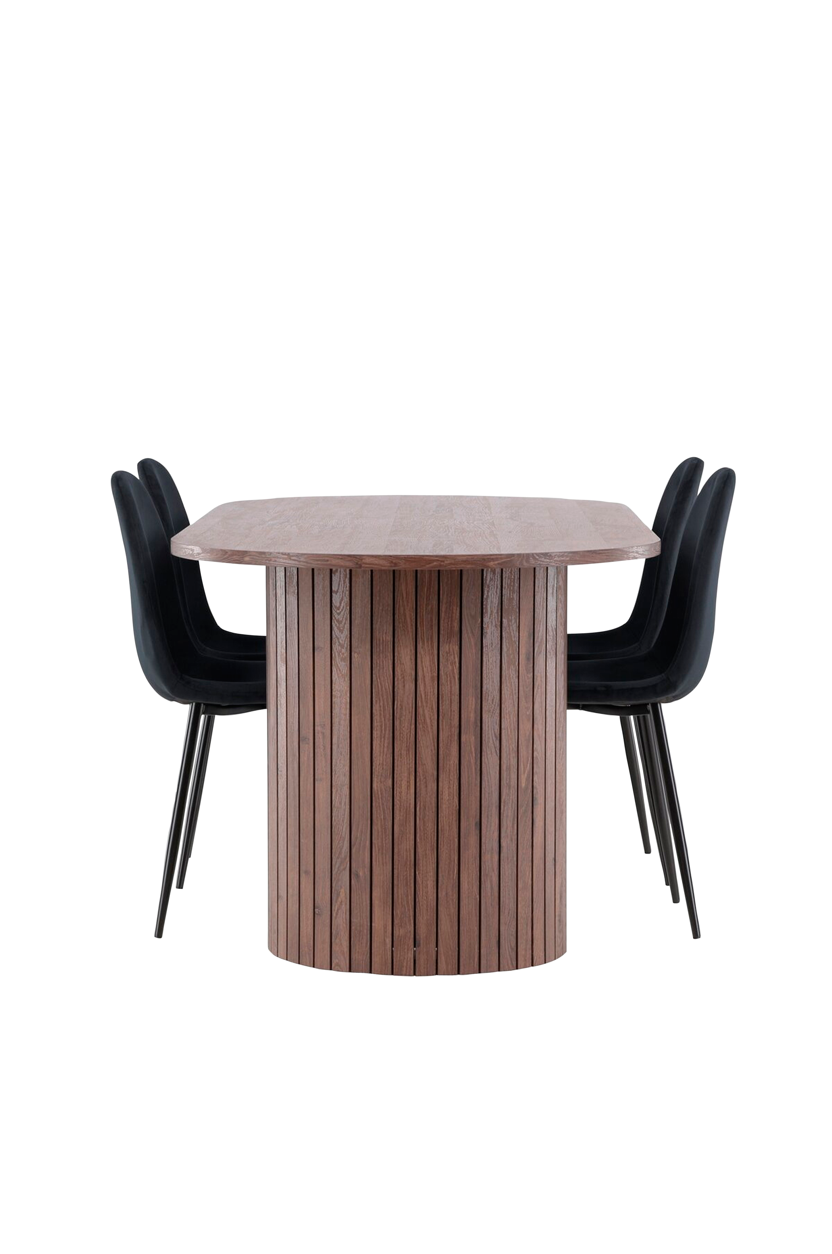 Löydä täydellinen ruokailusetti, jossa on polar-ruokailutuolit ja härön-ruokapöytä - yhdistelmä modernia eleganssia ja toimivuutta kotiisi. Polar-ruokailutuolit ovat moderni unelma. Näissä tuoleissa on täysin verhoiltu muotoilu, jossa on hieman pyöristetty selkänoja ja istuinosa samettikangasta, sekä jalat pulverimaalattua metallia. Ne ovat yhtä mukavia kuin silmiä hiveleviä ja luovat kutsuvan tunnelman ruokasaliisi. Vaatii kevyen kokoonpanon. Hoito-ohjeet: käytä tekstiilisuihketta kankaan kyllästämiseen ennen käyttöä, jolloin lika ja tahrat on helpompi poistaa. Poista tahrat välittömästi pyyhkimällä ne varovasti liinalla. Käytä sitkeämpiin tahroihin tahranpoistoainetta, joka on testattu ensin vähemmän näkyvällä kankaan osalla. Täydennä Härön ruokapöydällä, jossa yhteisöllisyys kukoistaa ja muistot syntyvät. Runsaan 200x90 cm:n kokoinen pöytä tarjoaa runsaasti tilaa sekä perheen että ystävien kokoamiseen miellyttäviä illallisia ja pitkiä keskusteluja varten. Härön-ruokapöydässä on tyylikäs viimeistely, joka antaa huoneellesi maanläheisen ja neutraalin tunnelman. Pöytälevy on valmistettu mdf-levystä, ja se on tuettu tukevilla teräsjaloilla, jotka takaavat vakauden kaikkien aterioiden ja kokoontumisten aikana. Luo ystävyyden ja yhteenkuuluvuuden ilmapiiri tällä ruokailusarjalla, jossa jokaisesta ateriasta tulee erityinen hetki, jonka muistat. Olipa kyse sitten jokapäiväisistä aterioista tai juhlallisista tilaisuuksista, Polar-ruokailutuoleista ja Härön-ruokapöydästä tulee kotisi sydän, jossa suhteet vahvistuvat ja ilo jaetaan.